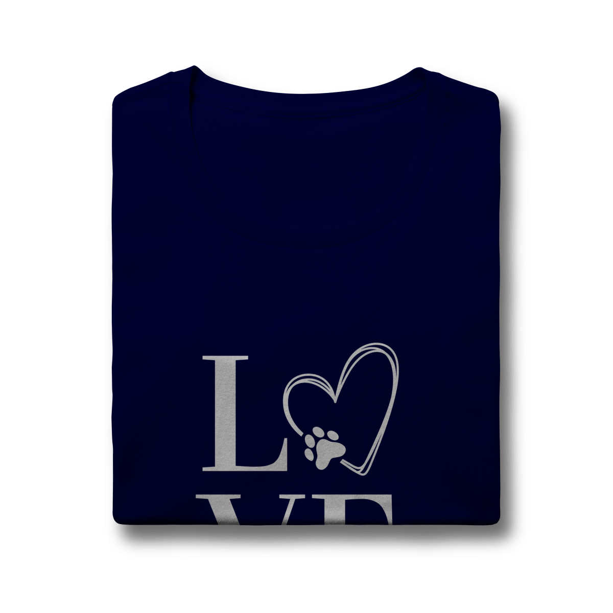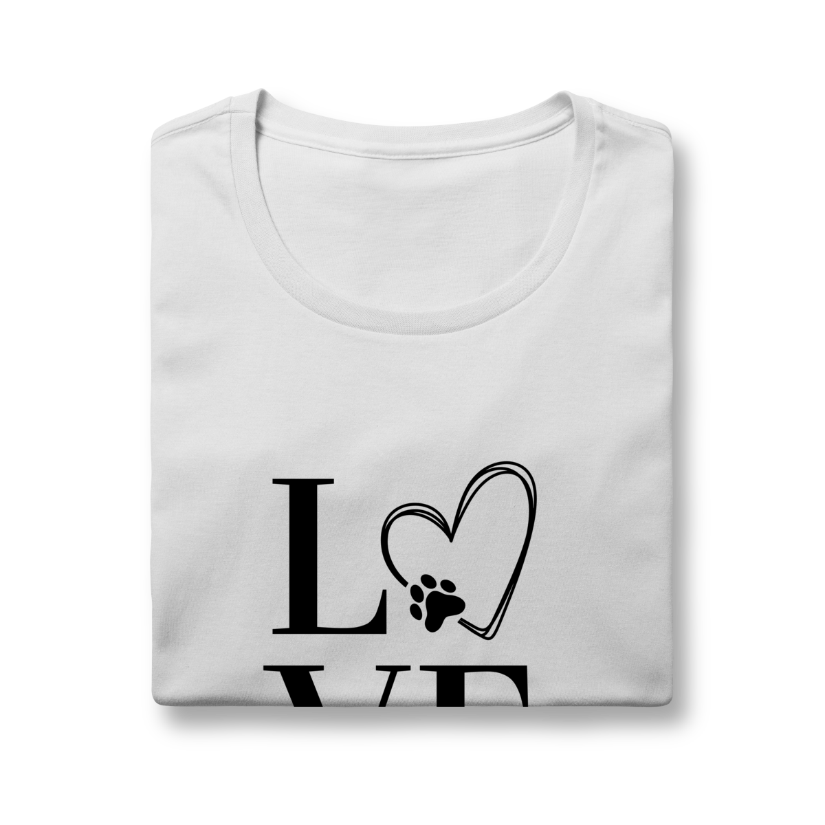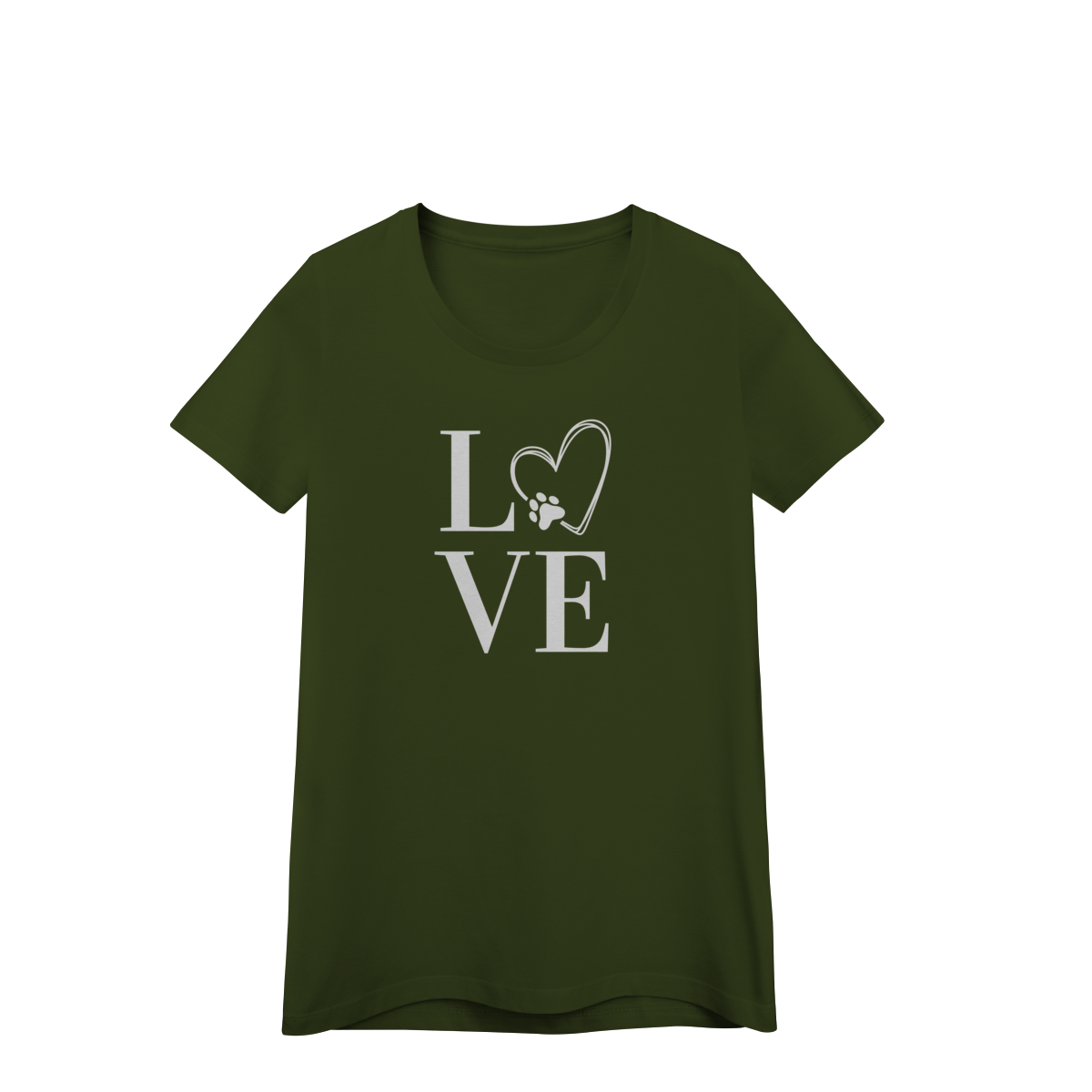 Mais do que uma camiseta, uma declaração de amor. A estampa "LOVE" traz um detalhe especial: o "O" transformado em coração com patinha, simbolizando o carinho e a lealdade dos nossos melhores amigos de quatro patas.