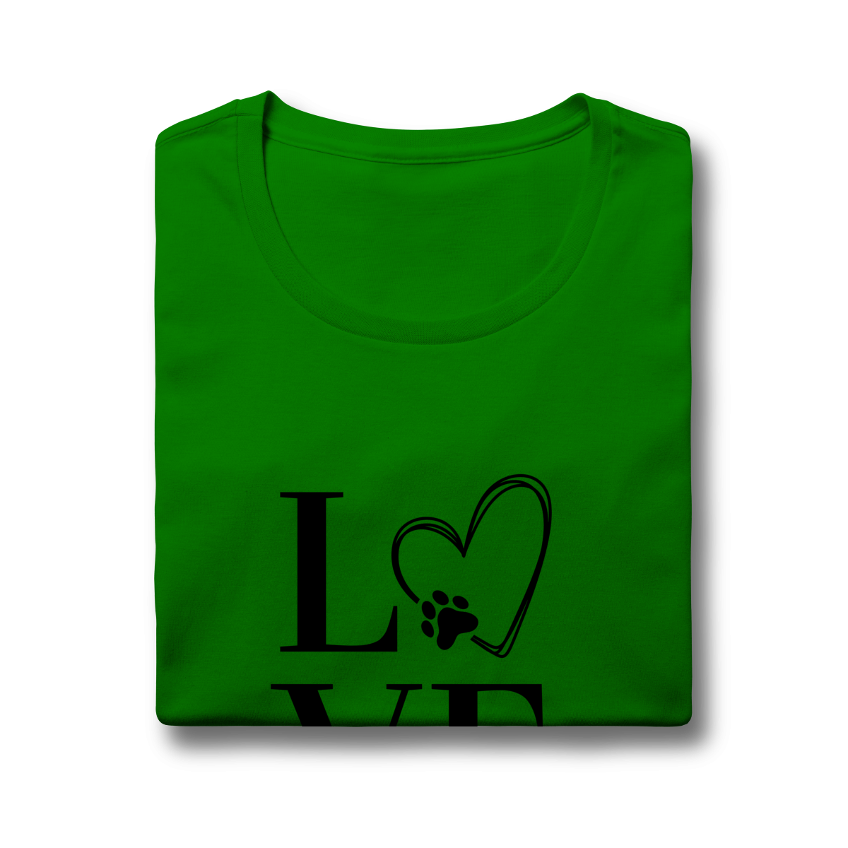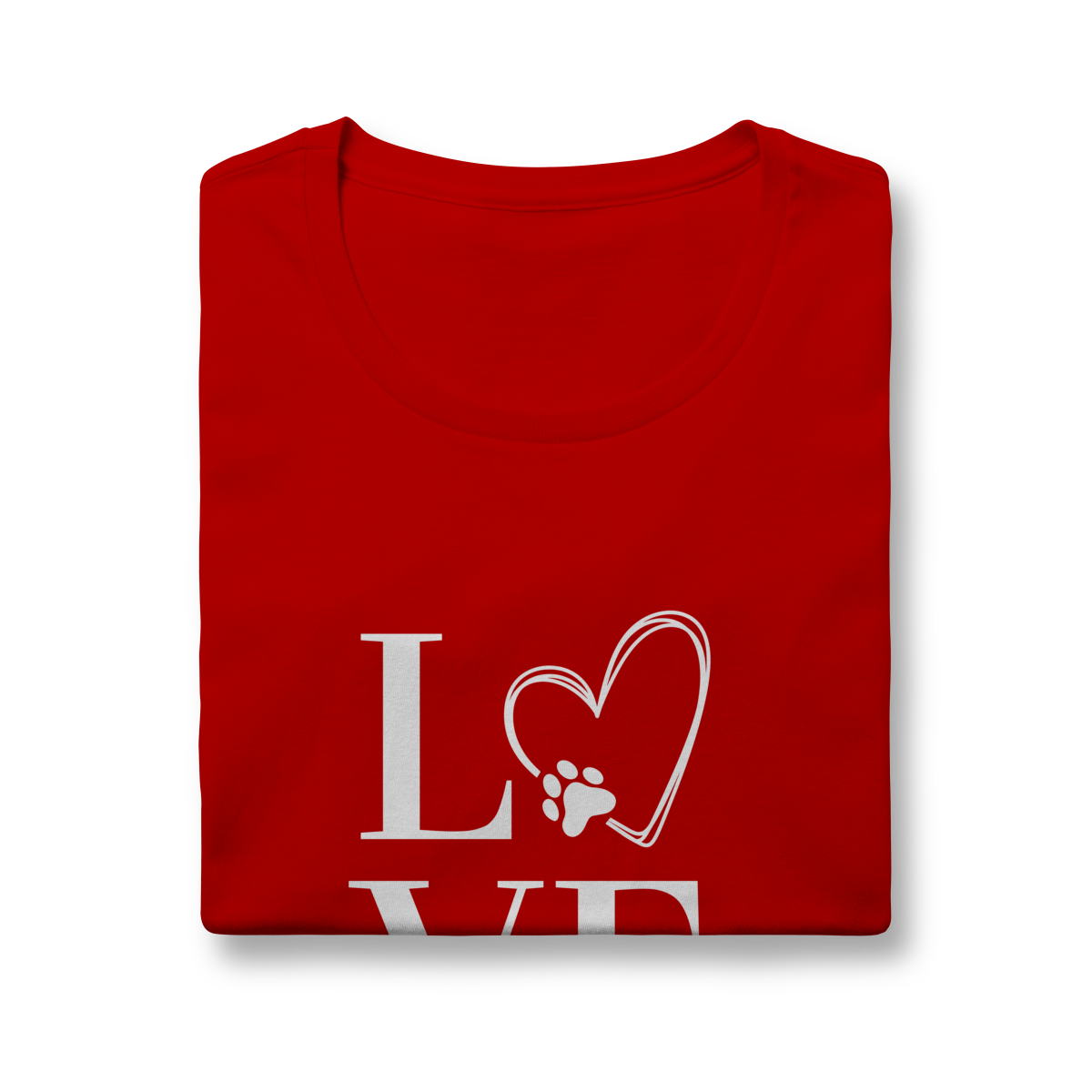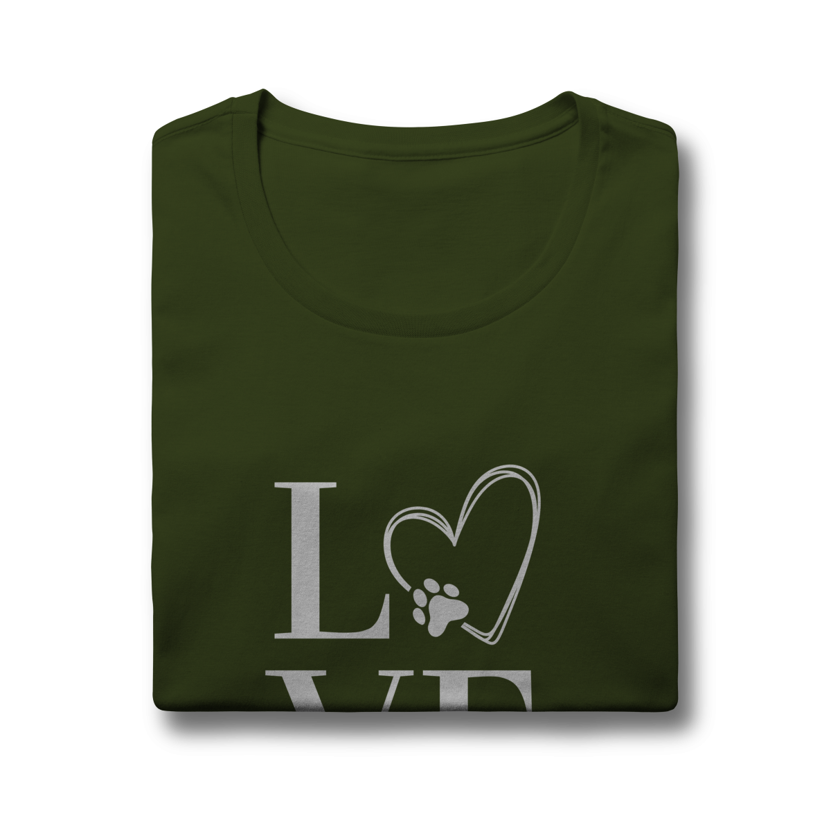 Mais do que uma camiseta, uma declaração de amor. A estampa "LOVE" traz um detalhe especial: o "O" transformado em coração com patinha, simbolizando o carinho e a lealdade dos nossos melhores amigos de quatro patas.