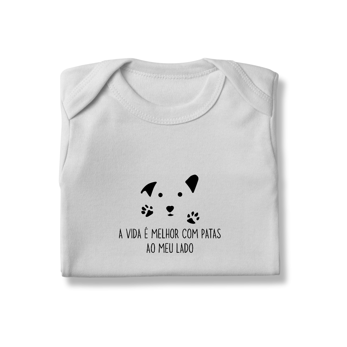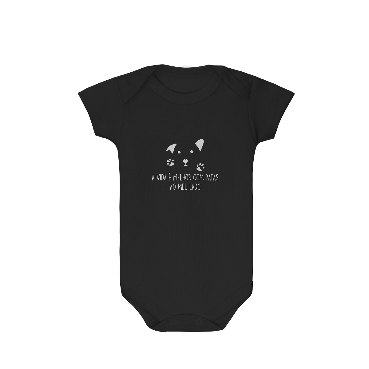 O Body Infantil – A Vida é Melhor com Patas traz uma estampa delicada com o rostinho de cachorro e a frase que aquece corações: a vida é mais feliz quando temos patinhas ao nosso lado. Feito para oferecer conforto ao bebê e arrancar sorrisos de todos os dog lovers.