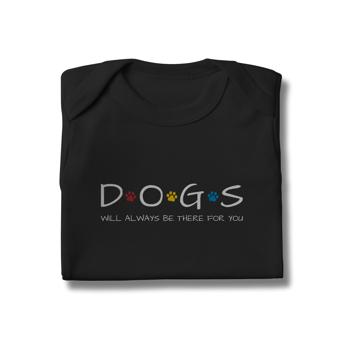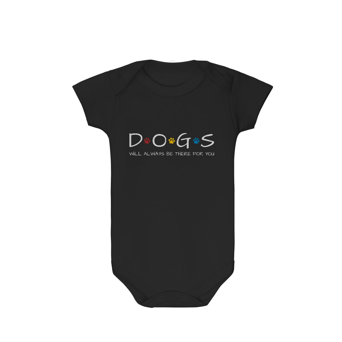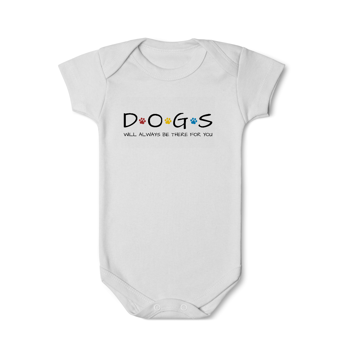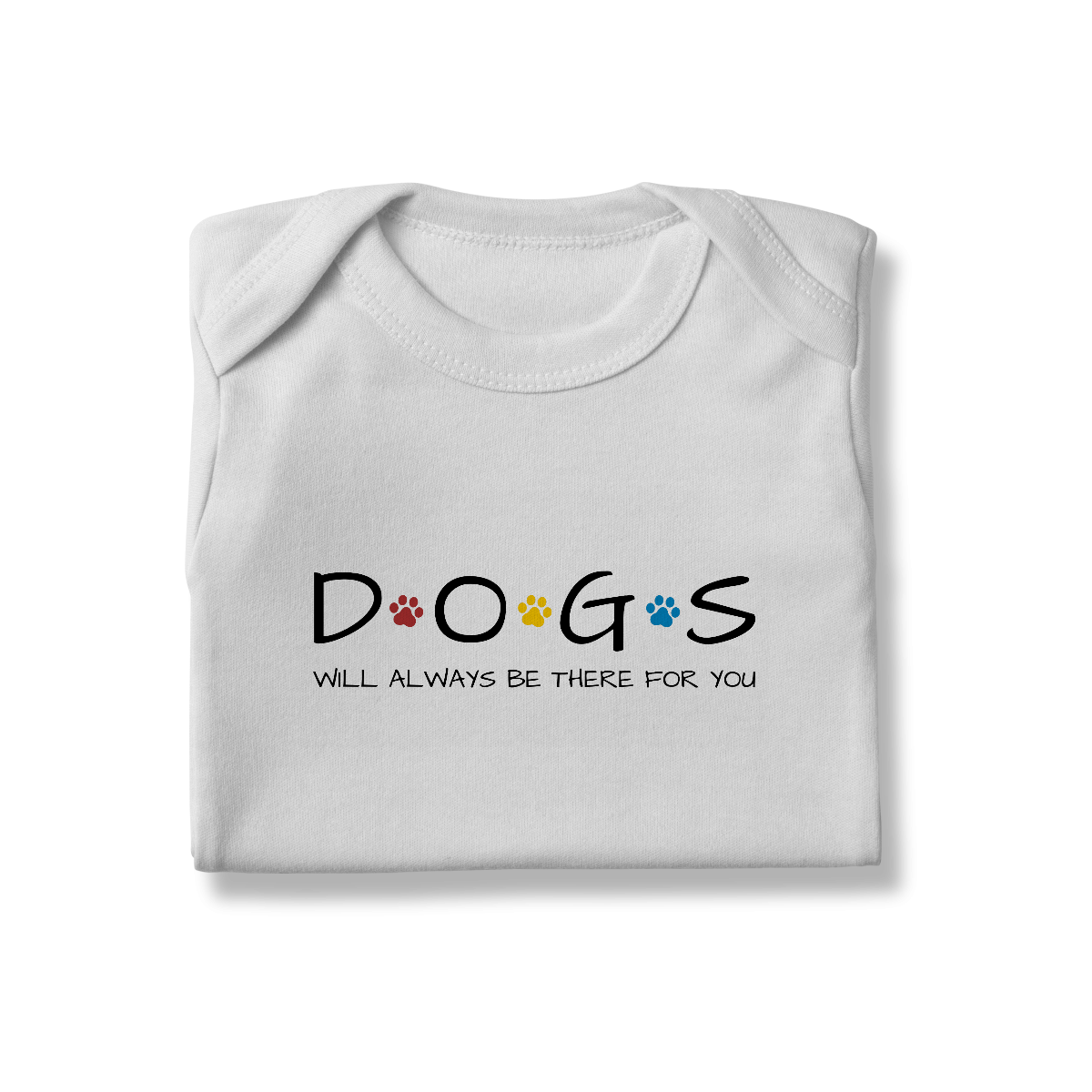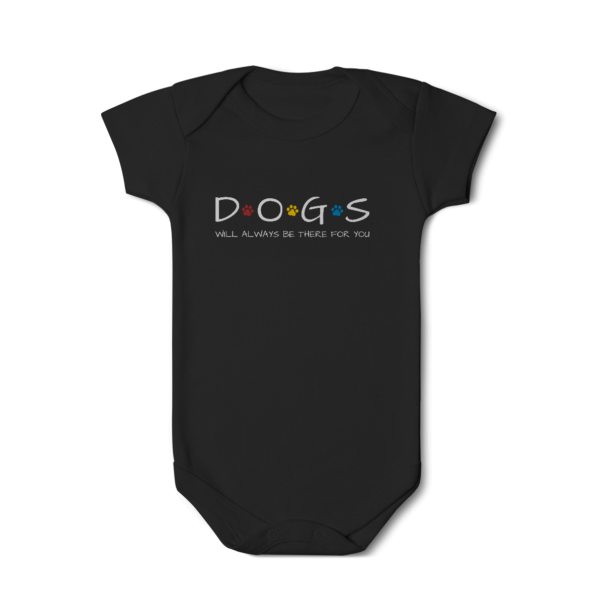 O Body Infantil – Dogs Will Always Be There For You traz a palavra DOGS com patinhas coloridas no estilo inconfundível da série Friends, acompanhada da frase inspirada na música tema que marcou gerações. Uma forma fofa e divertida de vestir os pequenos com referência pop e muito carinho canino.