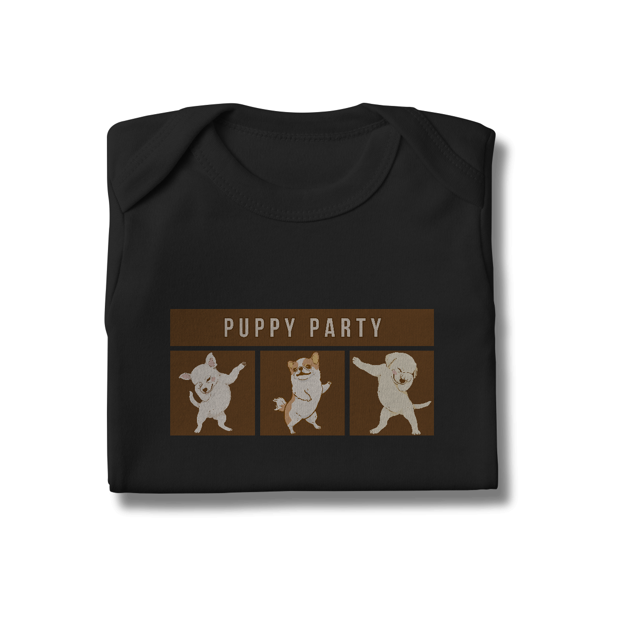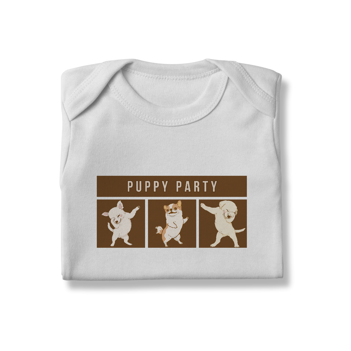 O Body Infantil – Puppy Party traz cachorrinhos dançando em clima de festa, transmitindo alegria e leveza. Uma peça que mistura conforto e estilo, perfeita para os pequenos que já nasceram para celebrar a vida ao lado dos pets.