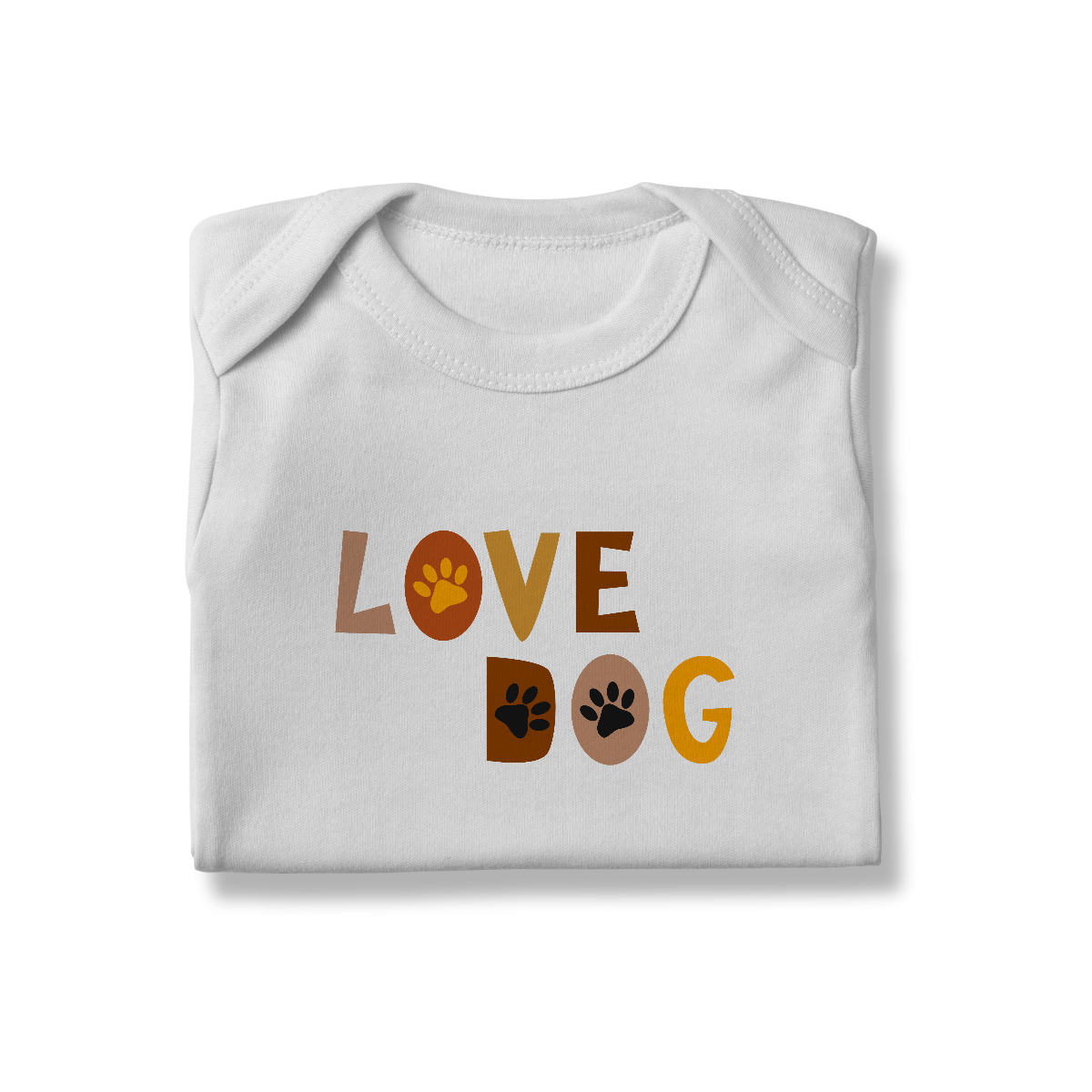 O Body Infantil – Love Dog traz uma estampa divertida e carinhosa, com letras coloridas e patinhas que formam a palavra. Um jeito fofo e cheio de estilo de mostrar que os bebês também fazem parte da família dog lover.