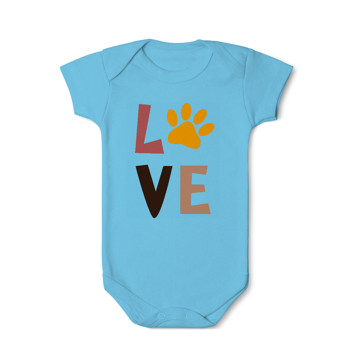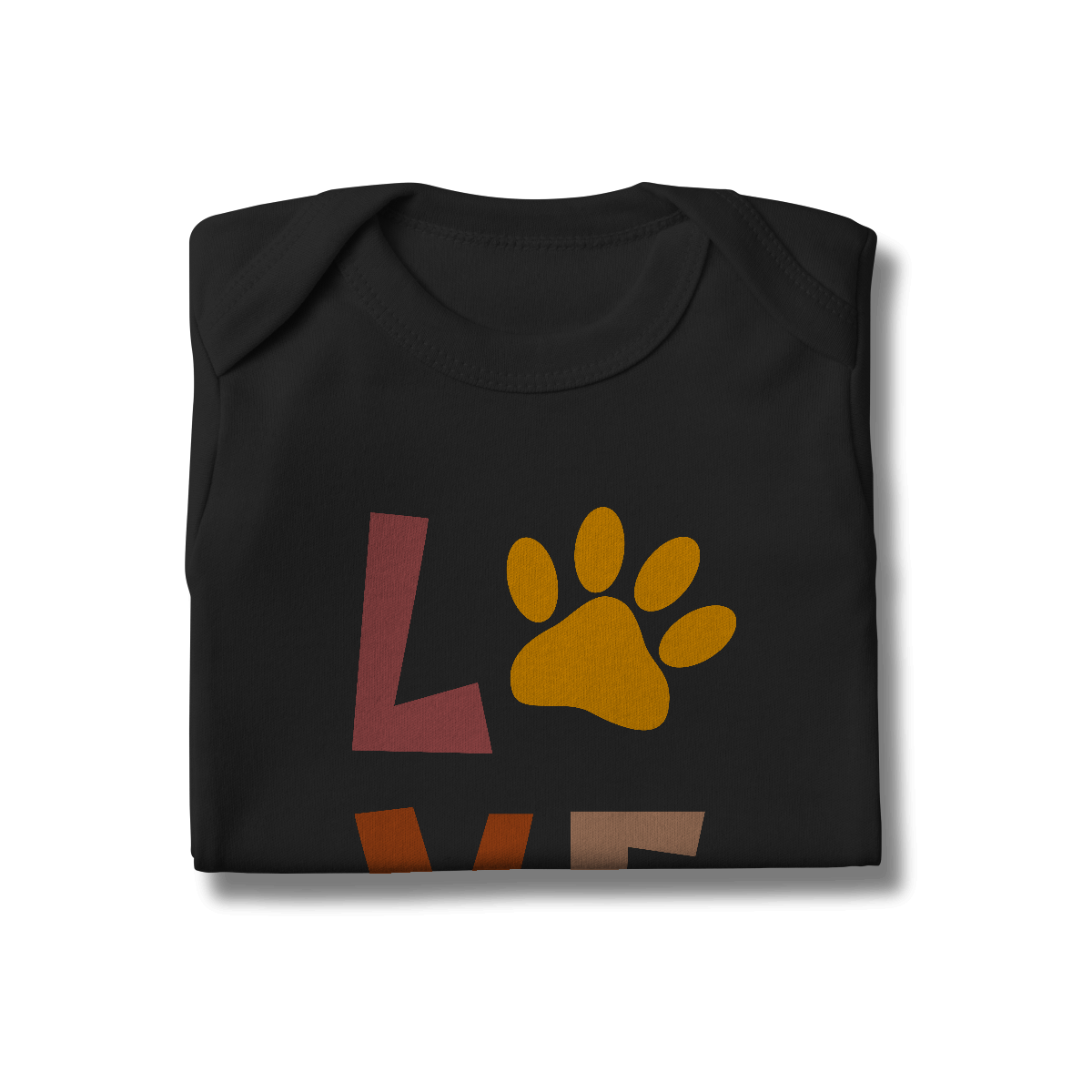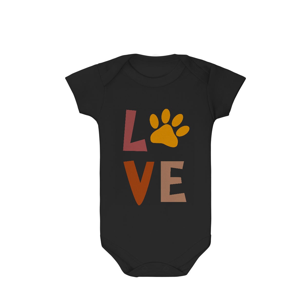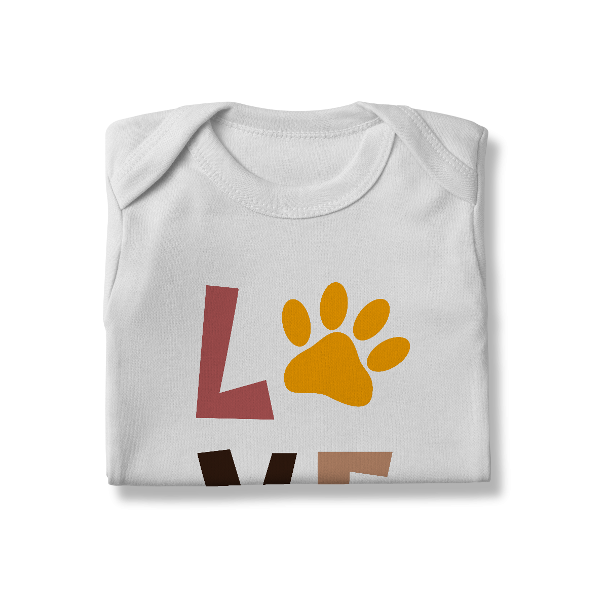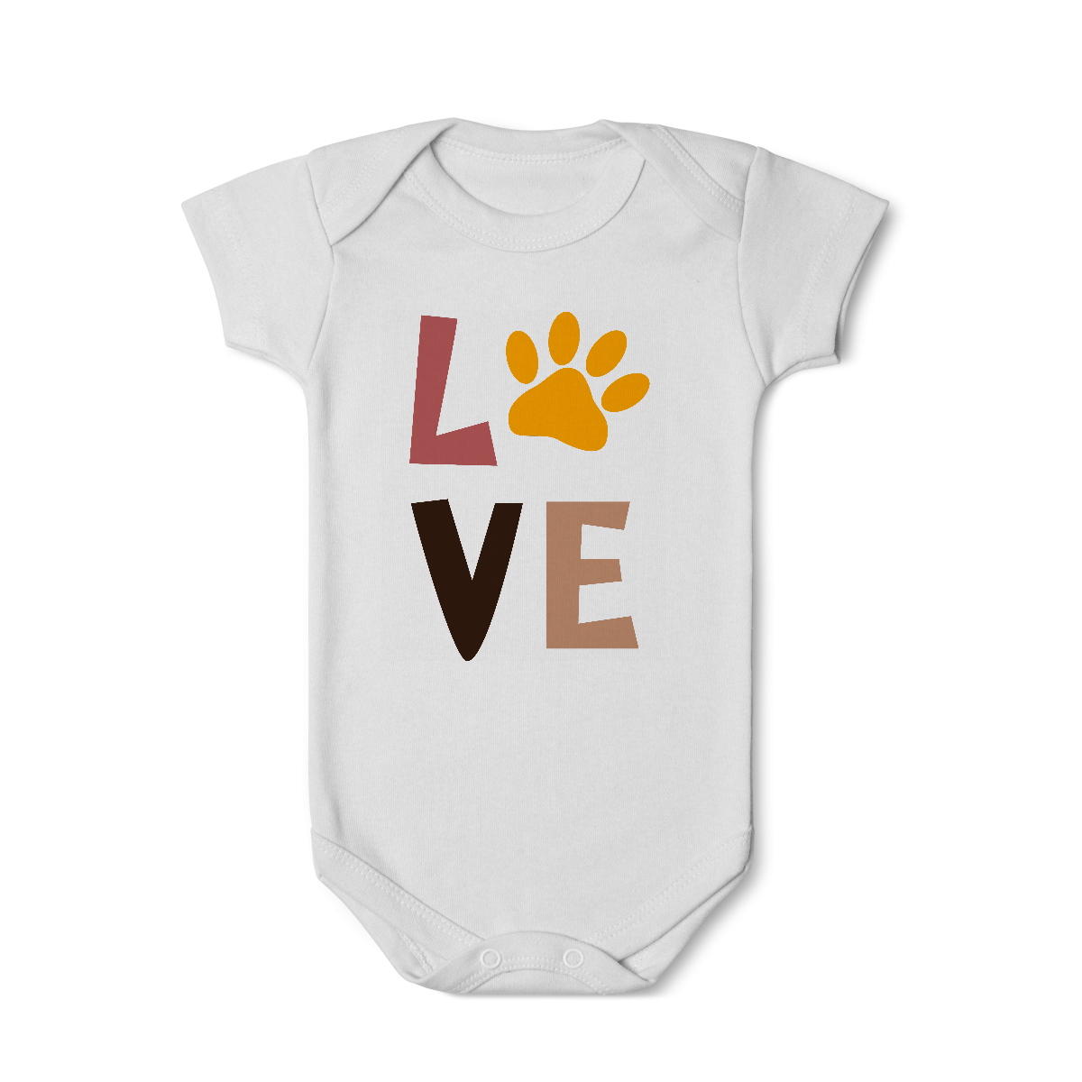 O Body Infantil – Love Paw destaca a palavra LOVE com a pegada canina como protagonista, mostrando que o carinho pelos pets já começa desde cedo. Um design fofo, divertido e cheio de significado.