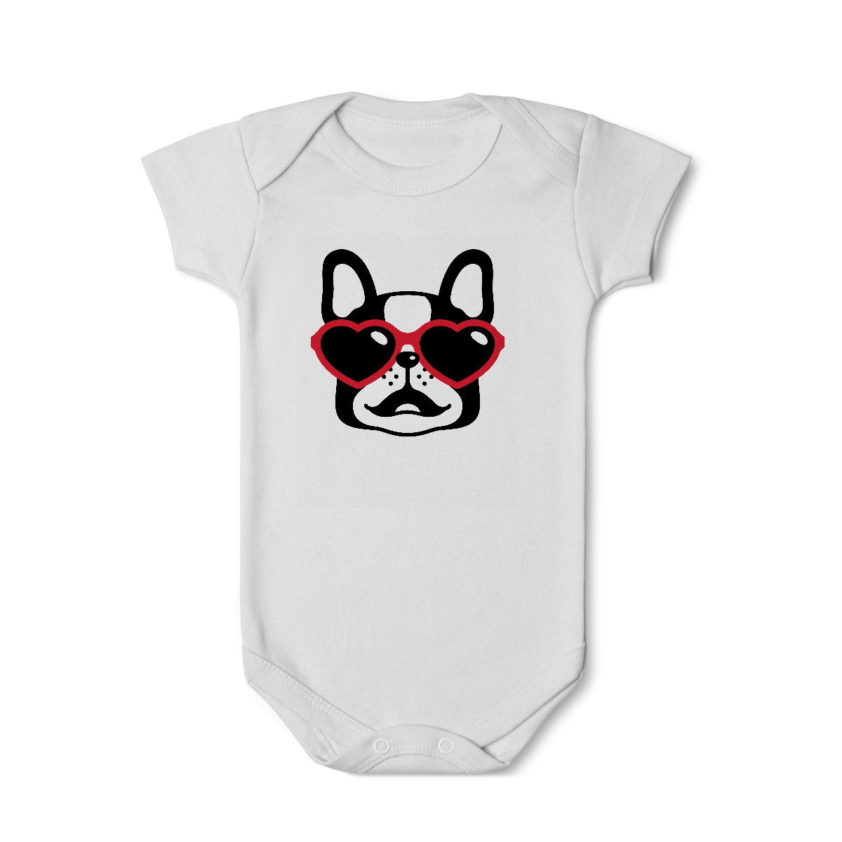 O Body Infantil – Dog Heart Eyes traz a ilustração de um dog estiloso usando óculos em formato de coração, unindo charme e diversão em uma peça única. Um body que transmite amor e garante um look cheio de personalidade para os pequenos.