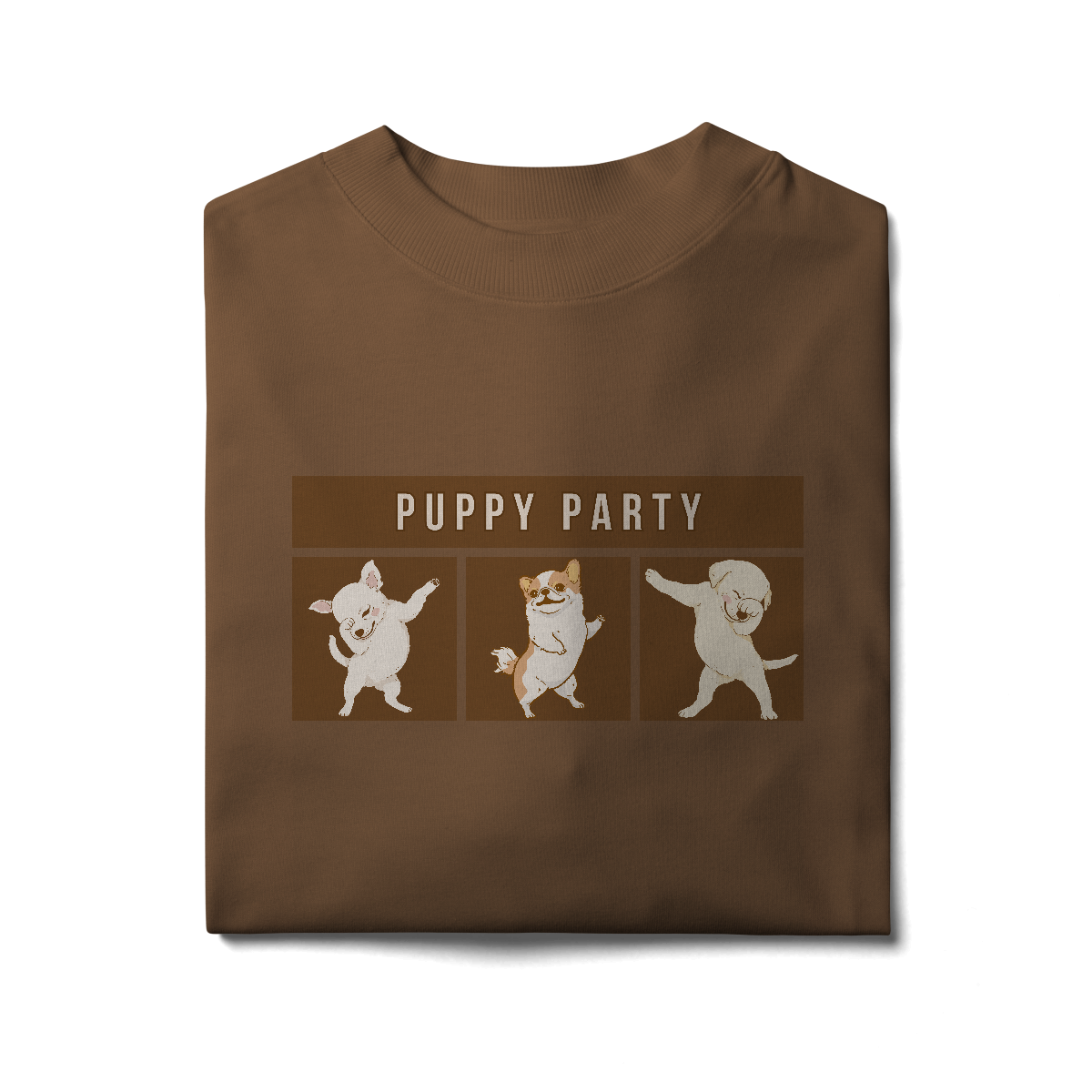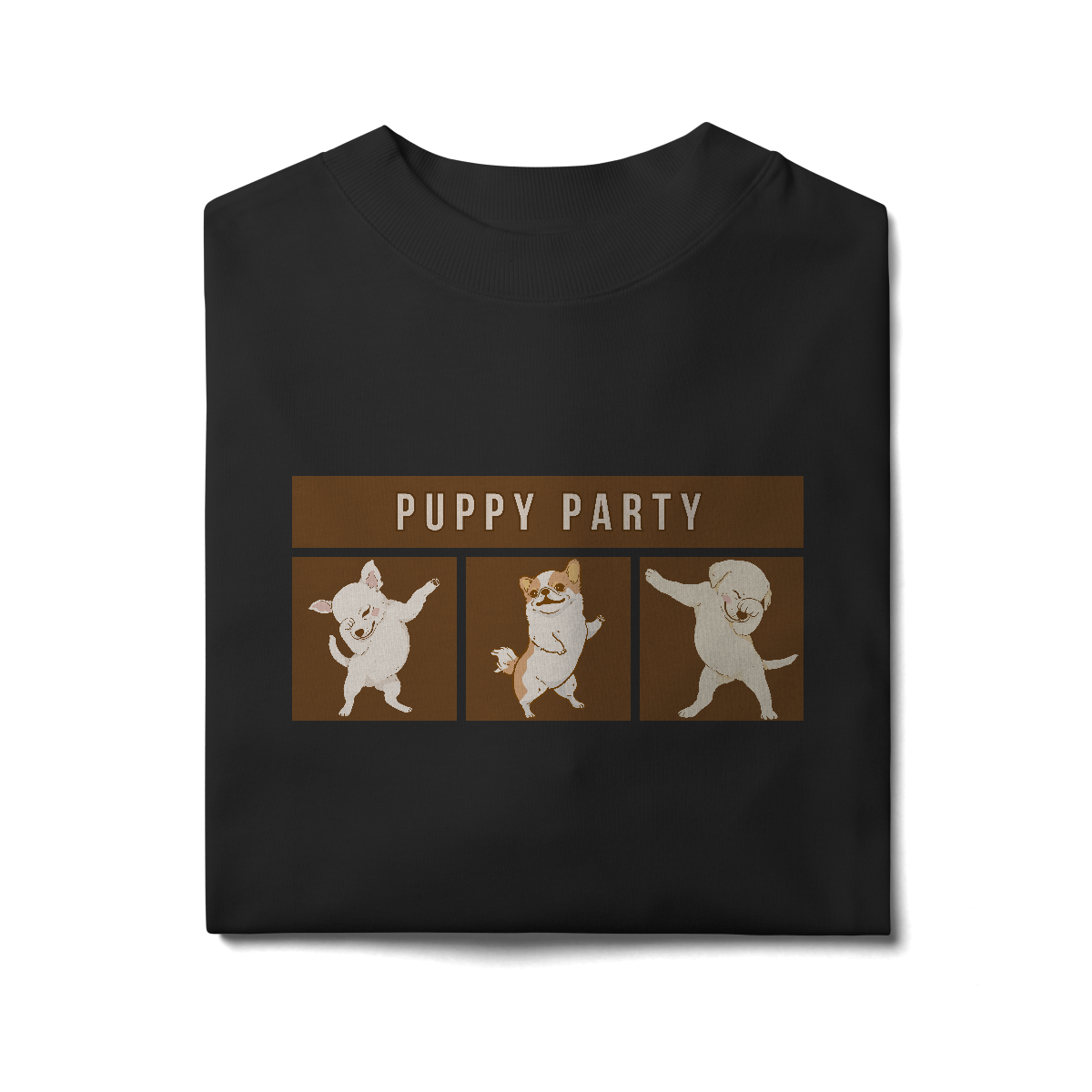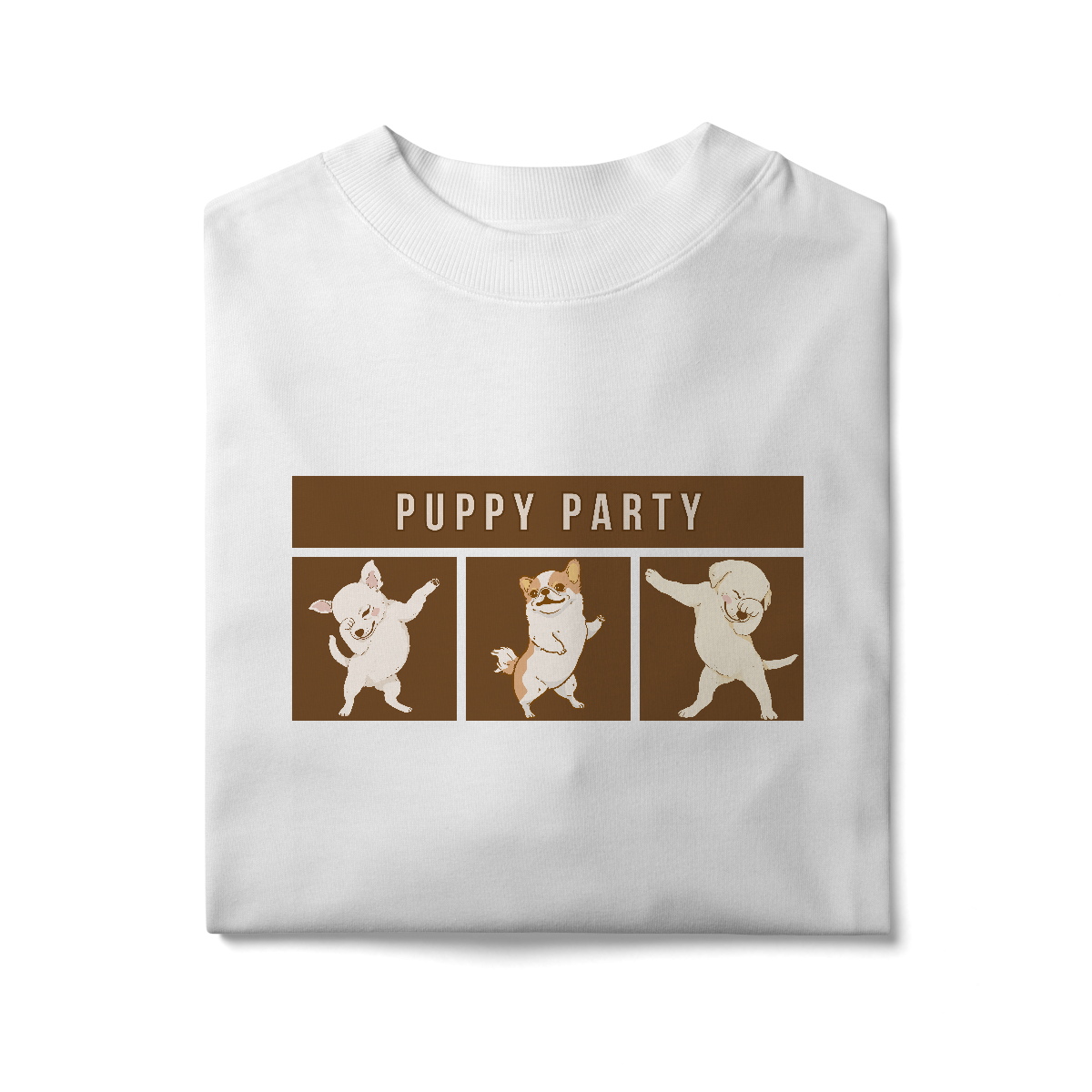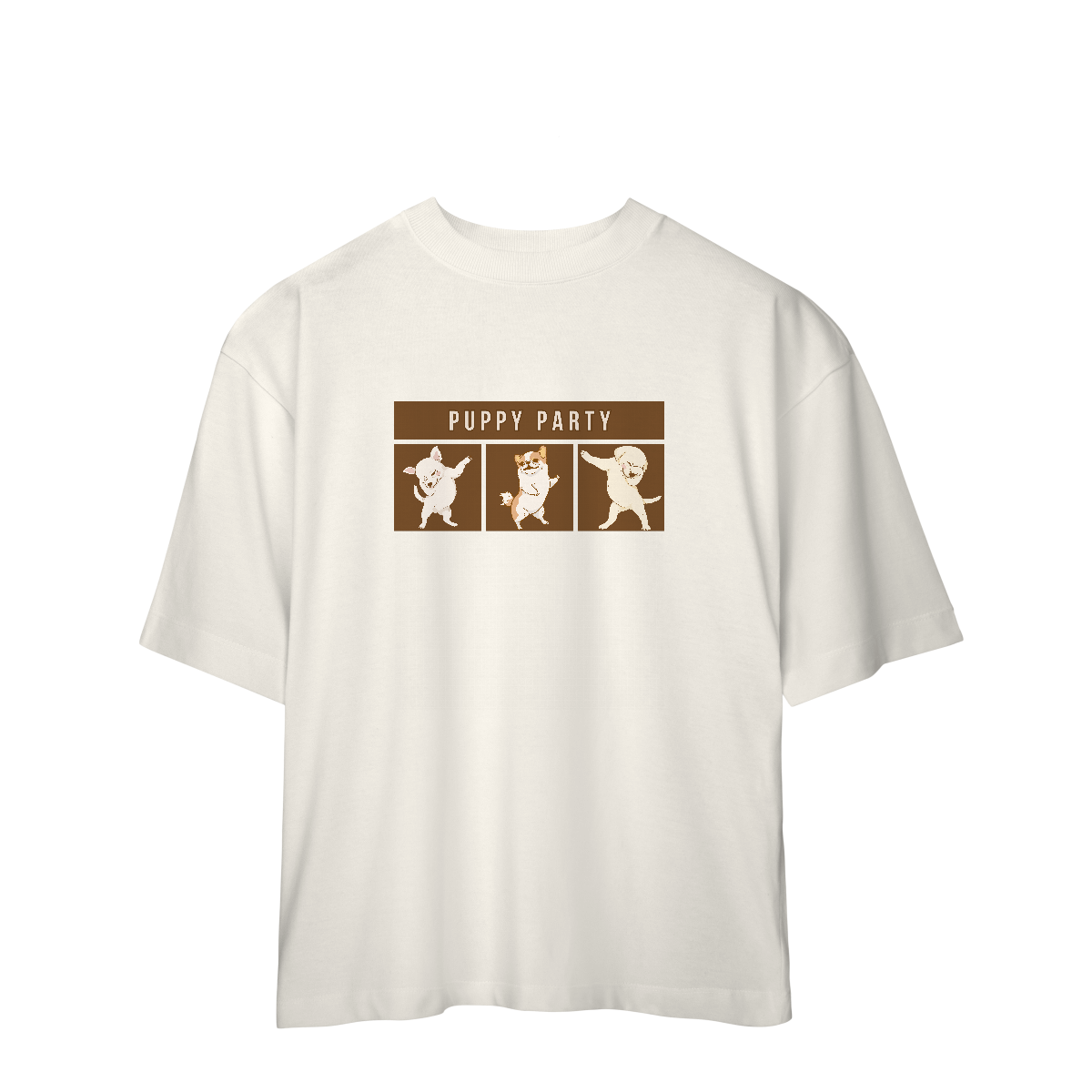 A Camiseta Puppy Party traz uma estampa descontraída com cachorrinhos dançando em clima de festa, perfeita para quem acredita que a vida ao lado dos pets é sempre motivo de celebração. Um modelo leve e cheio de personalidade para alegrar qualquer look.