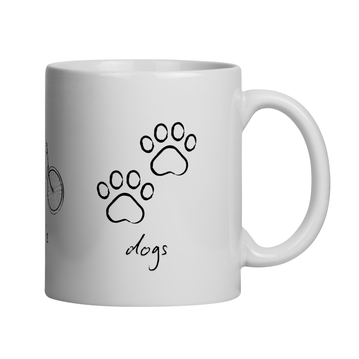 A fórmula da felicidade agora em versão caneca! Um design delicado e cheio de estilo que une três paixões universais: café quentinho, pedaladas revigorantes e, claro, o amor incondicional dos dogs.