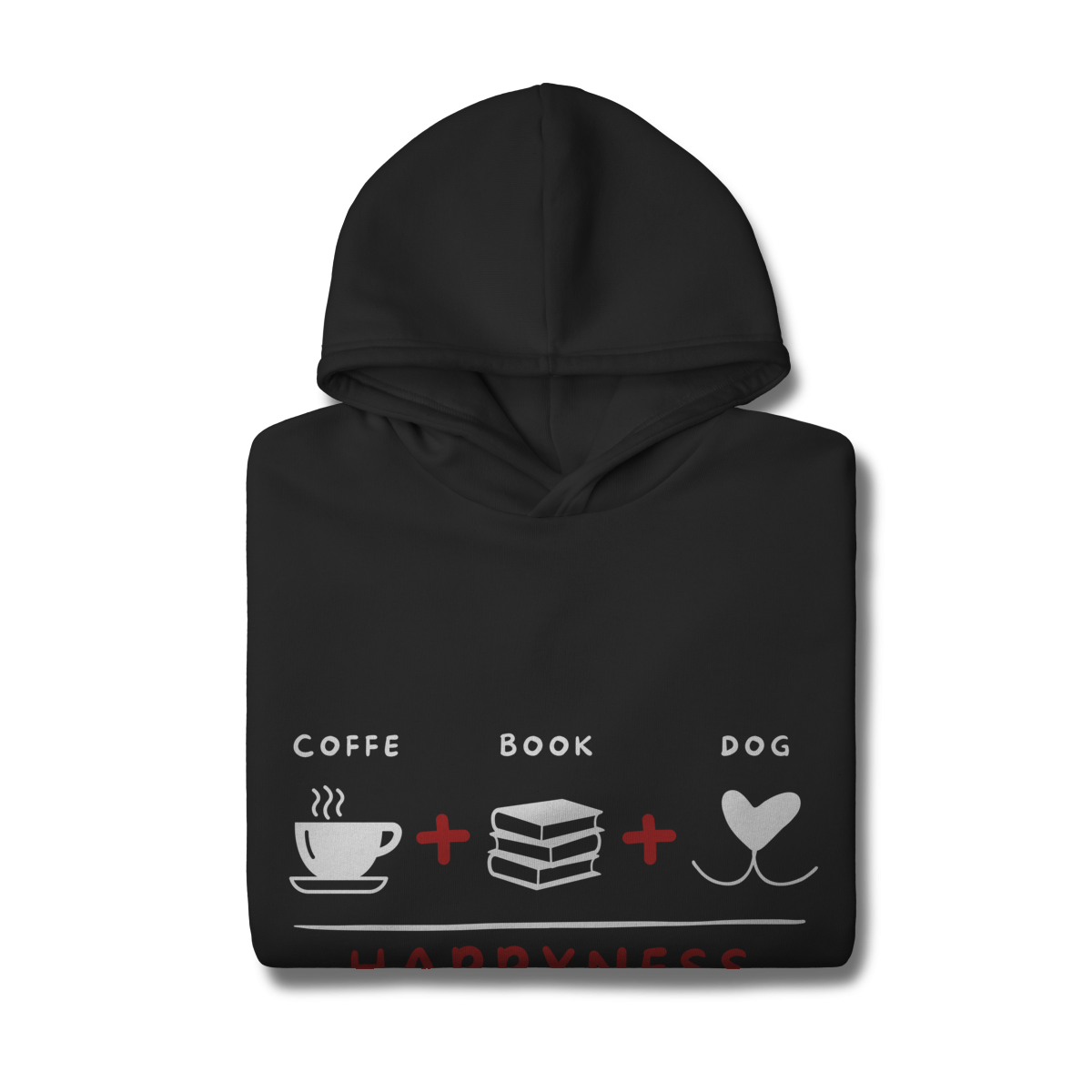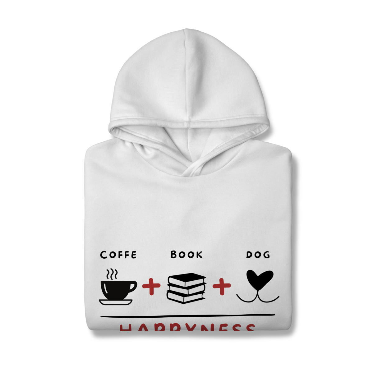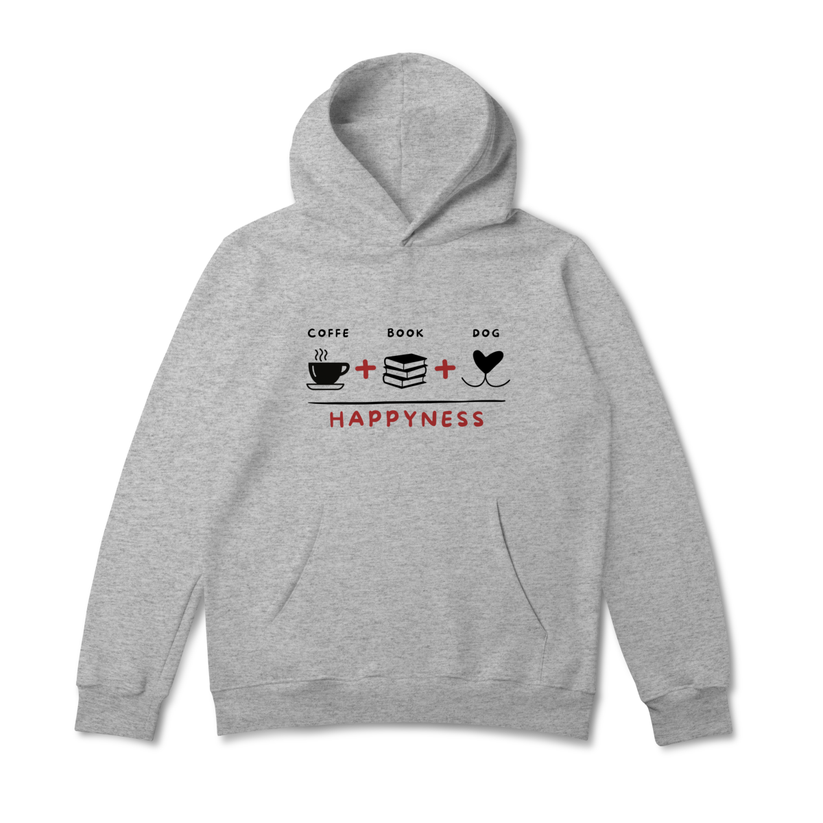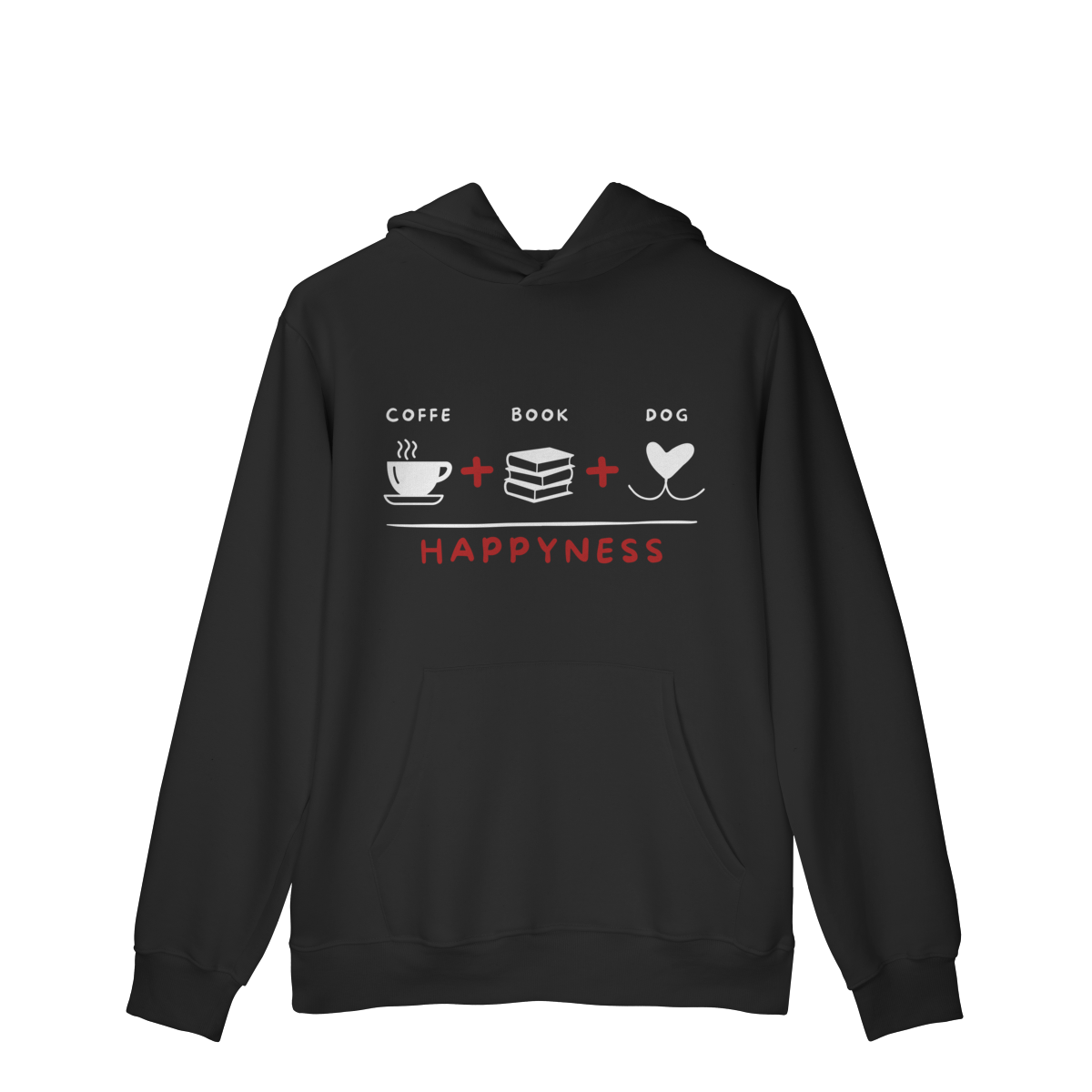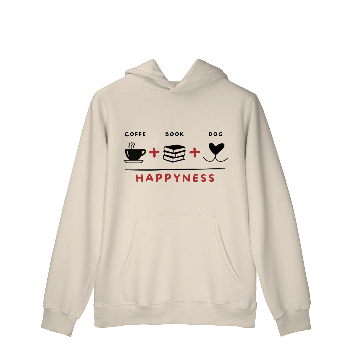 A Moletom Happyness combina três paixões universais: café, livros e cachorros. Com estampa divertida em estilo minimalista, ela traduz de forma leve o que realmente importa para quem ama pequenos prazeres que tornam o dia completo.