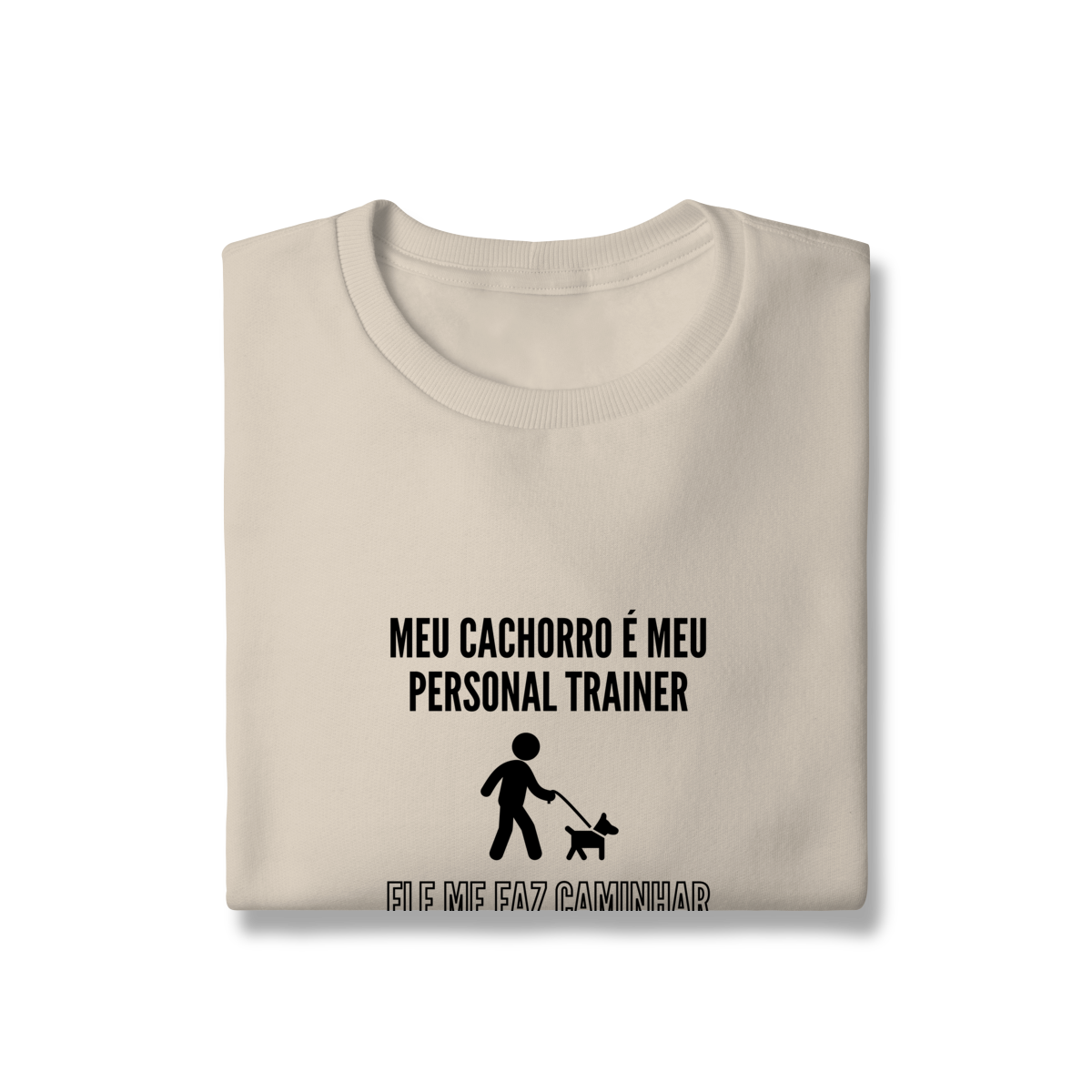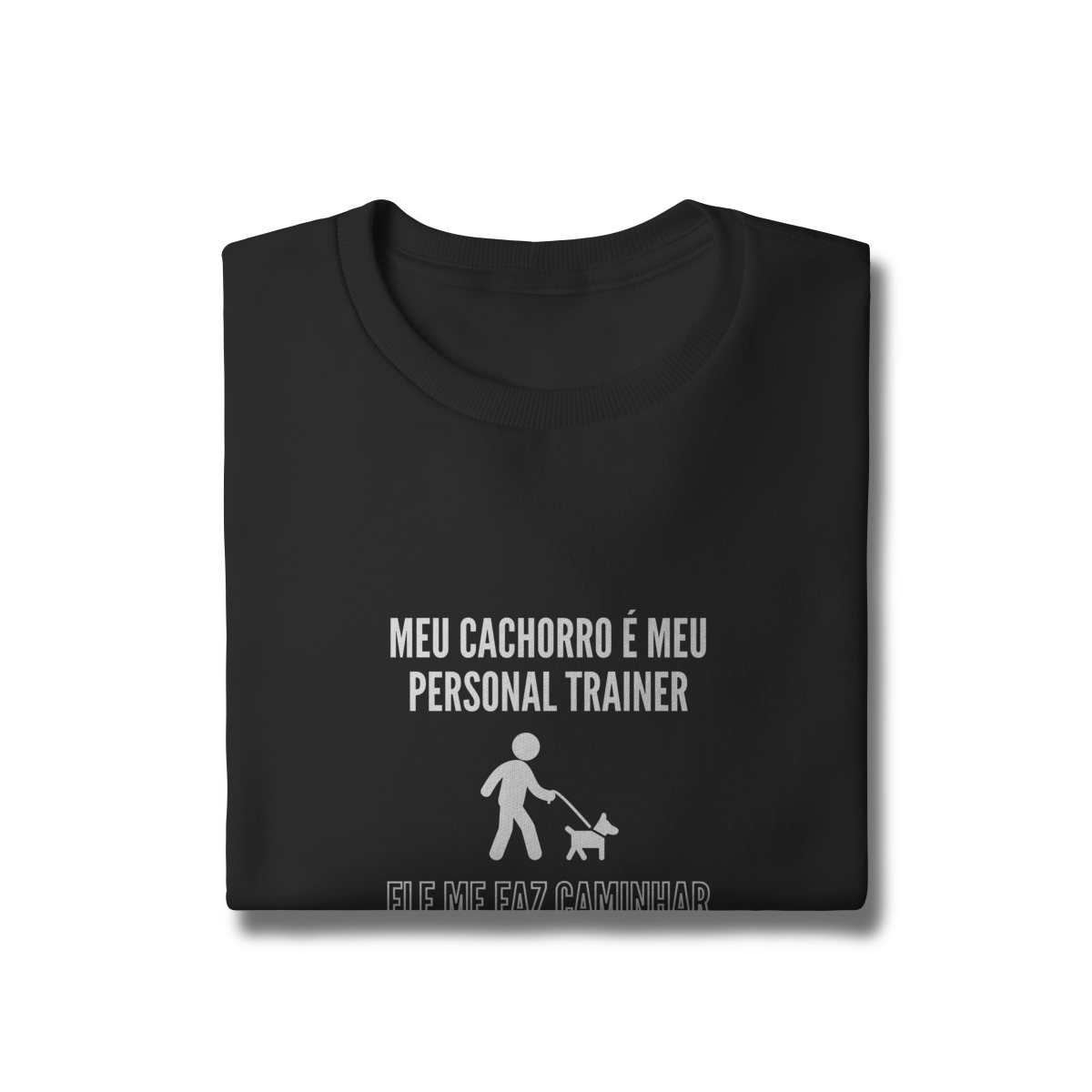Com a estampa divertida “Meu cachorro é meu personal trainer – ele me faz caminhar todos os dias”, essa camiseta é perfeita para quem ama mostrar, com bom humor, como os pets transformam a rotina.