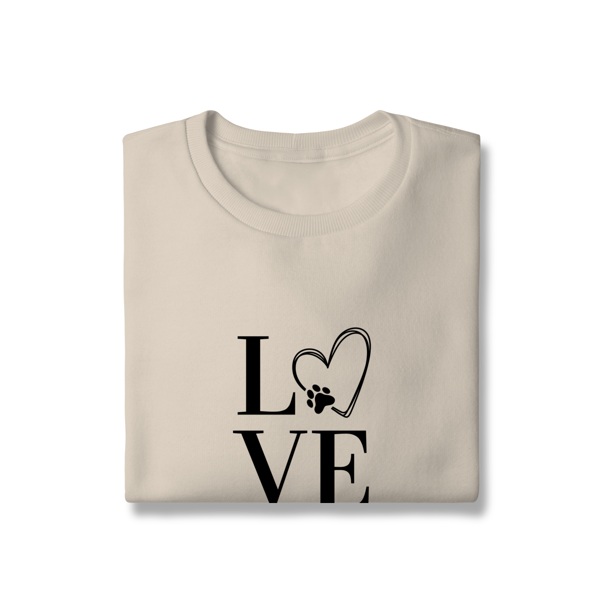 Mais do que um moletom, uma declaração de amor. A estampa "LOVE" traz um detalhe especial: o "O" transformado em coração com patinha, simbolizando o carinho e a lealdade dos nossos melhores amigos de quatro patas.