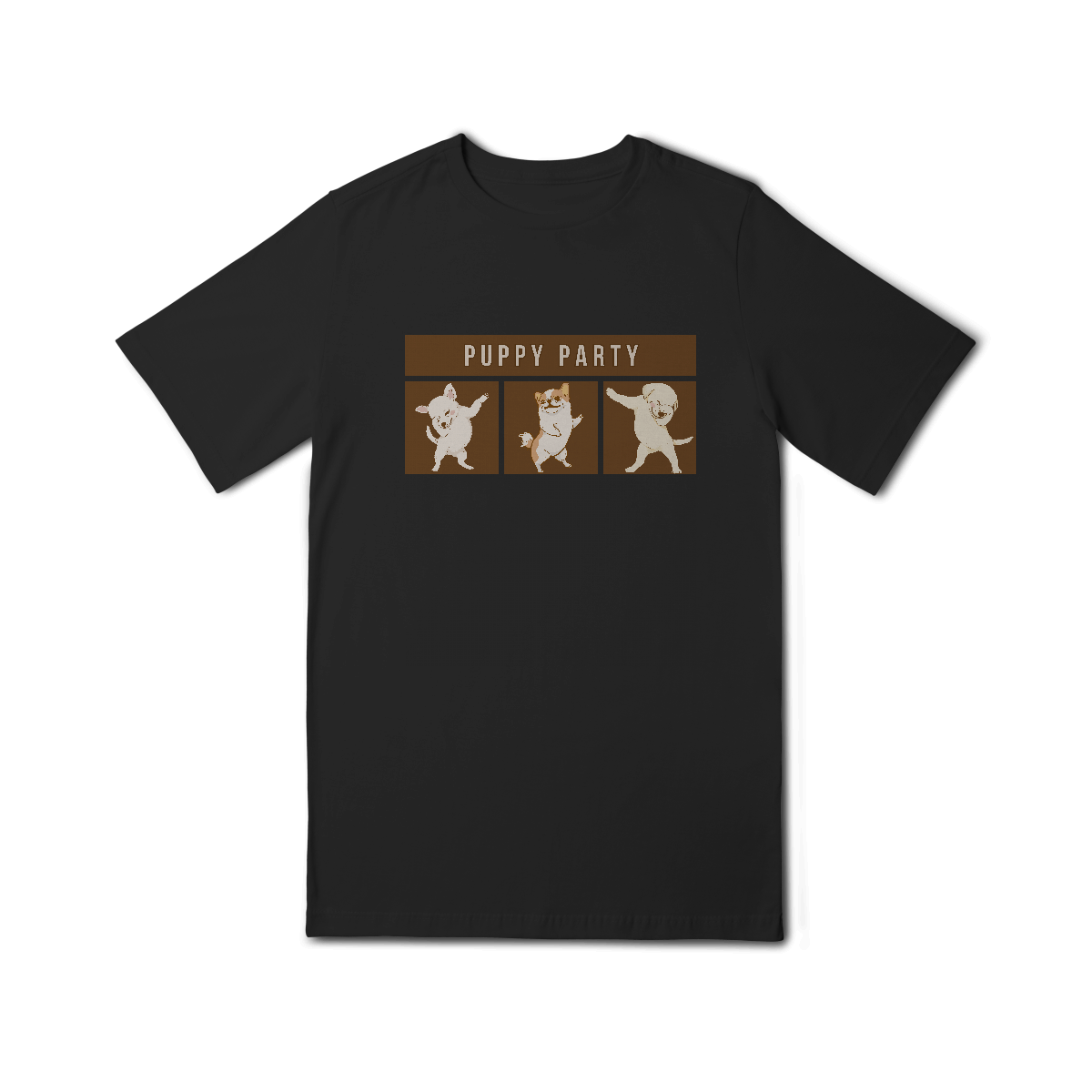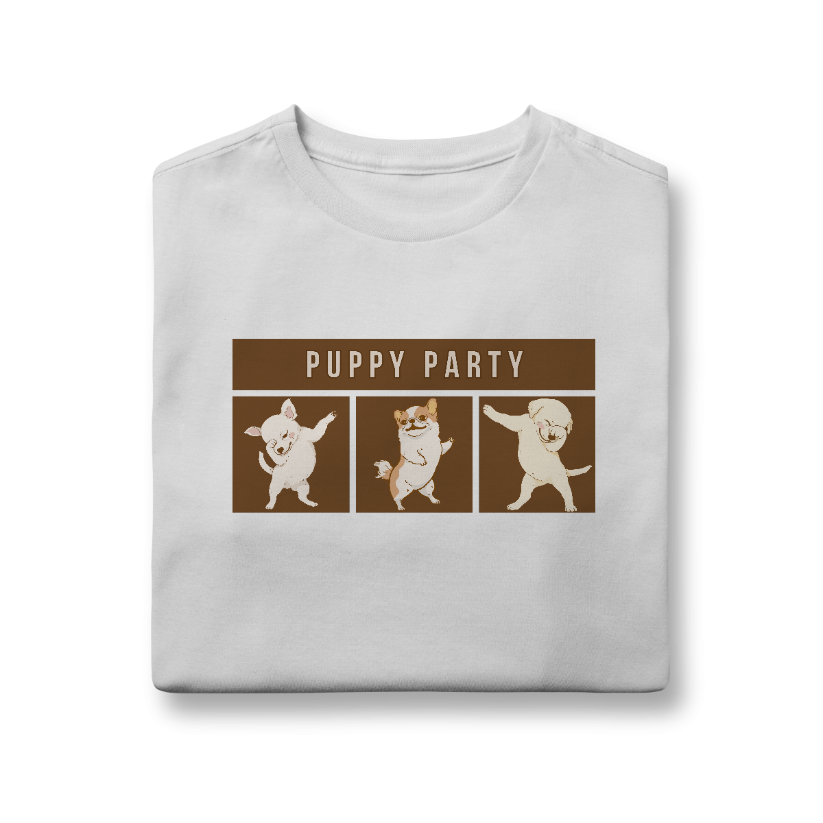 A Camiseta Puppy Party traz uma estampa descontraída com cachorrinhos dançando em clima de festa, perfeita para quem acredita que a vida ao lado dos pets é sempre motivo de celebração. Um modelo leve e cheio de personalidade para alegrar qualquer look.
