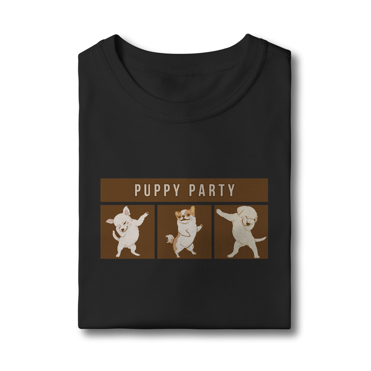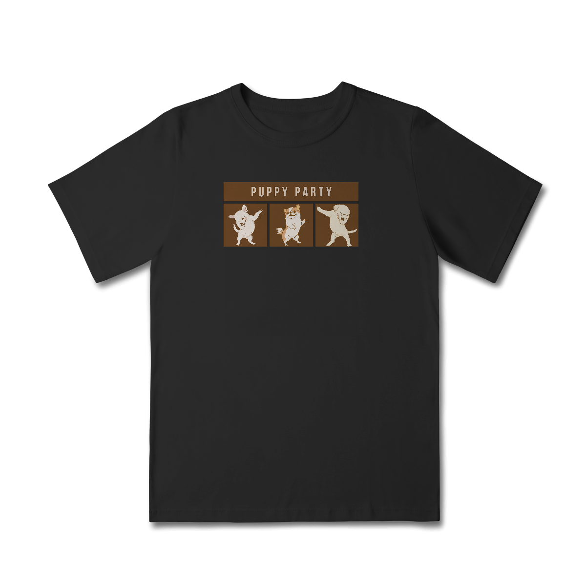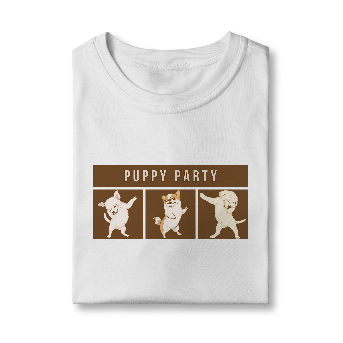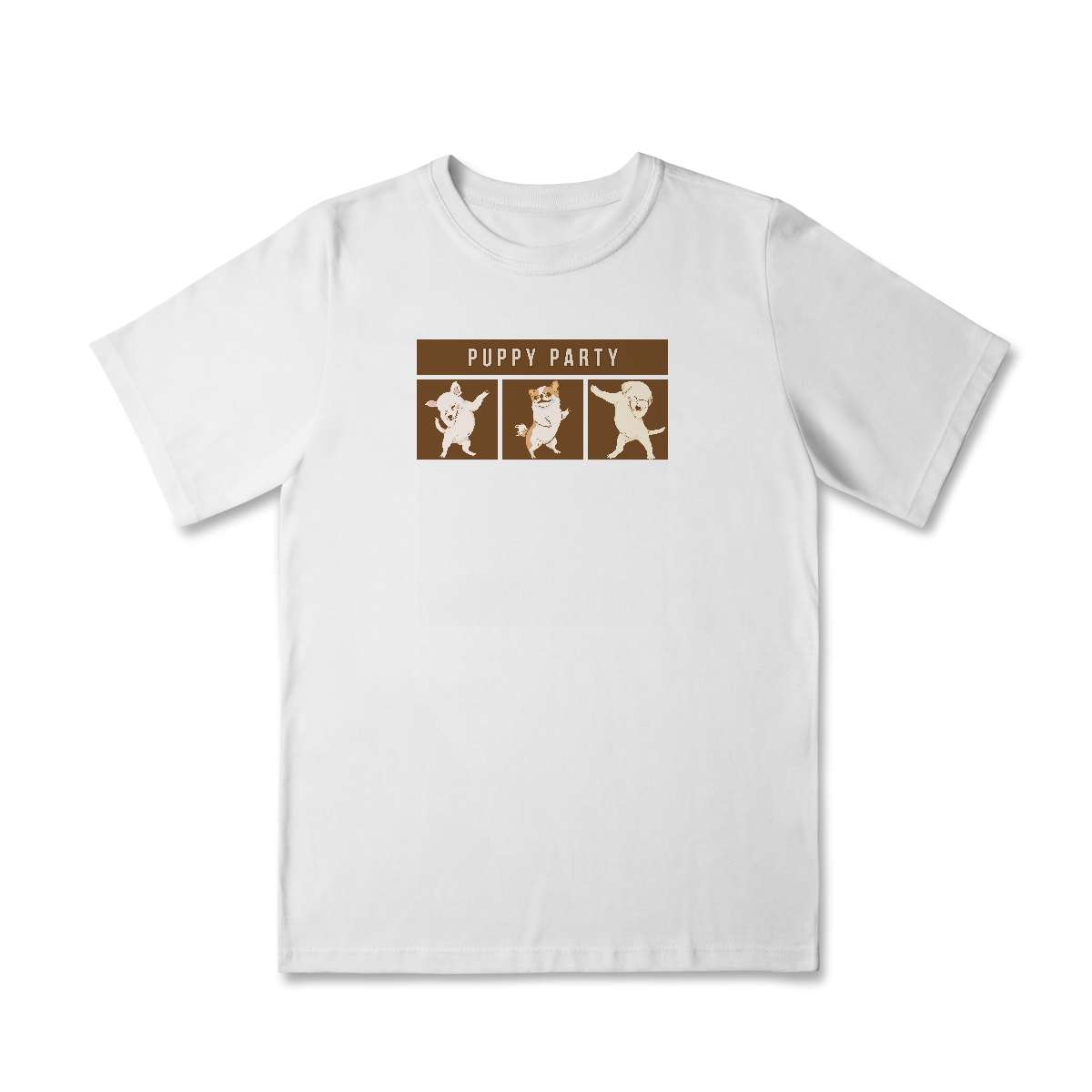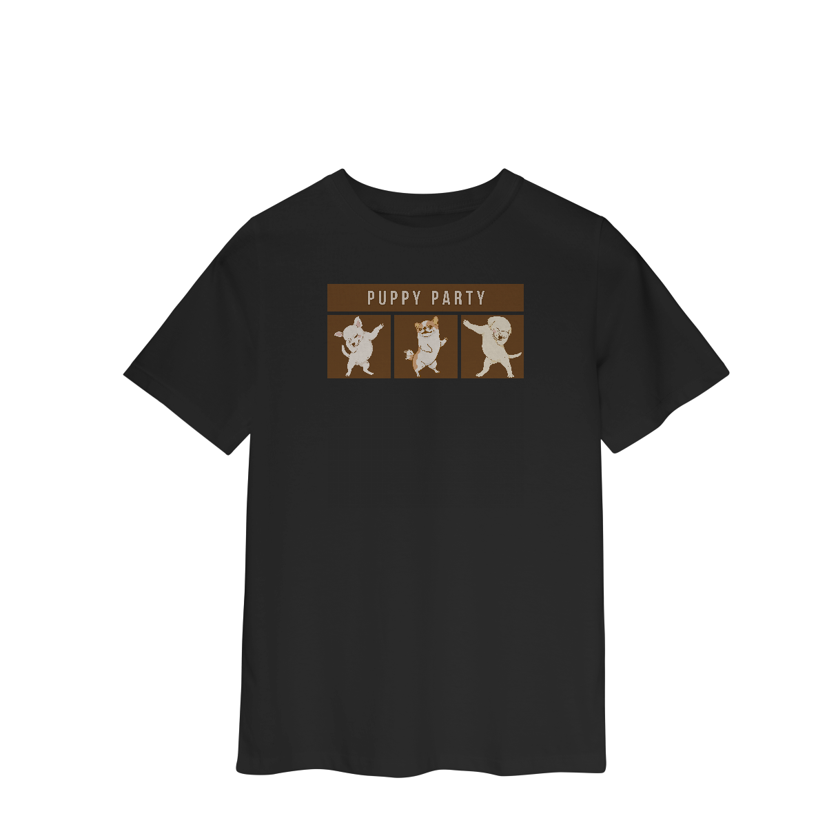 A Camiseta Puppy Party traz uma estampa descontraída com cachorrinhos dançando em clima de festa, perfeita para quem acredita que a vida ao lado dos pets é sempre motivo de celebração. Um modelo leve e cheio de personalidade para alegrar qualquer look.
