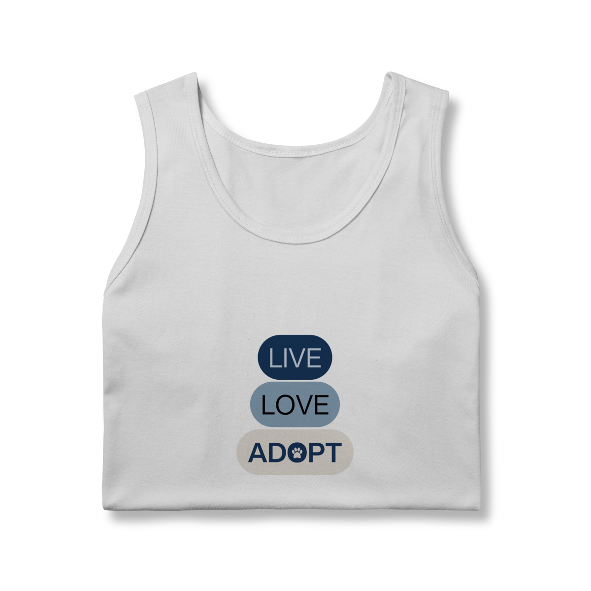 Mais que um estilo, uma mensagem! A estampa Live Love Adopt transmite, de forma minimalista e elegante, a importância de viver com amor e incentivar a adoção.