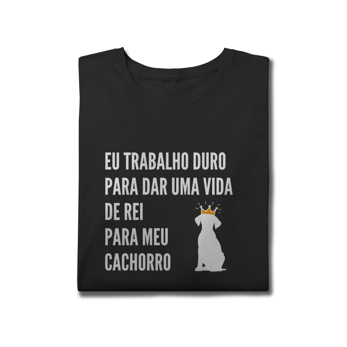 Com estampa divertida e criativa, essa camiseta é perfeita para quem ama mostrar de forma descontraída o quanto seu cachorro é mimado. Confortável, leve e cheia de estilo, ela combina com qualquer ocasião — inclusive aquele passeio especial com seu pet.