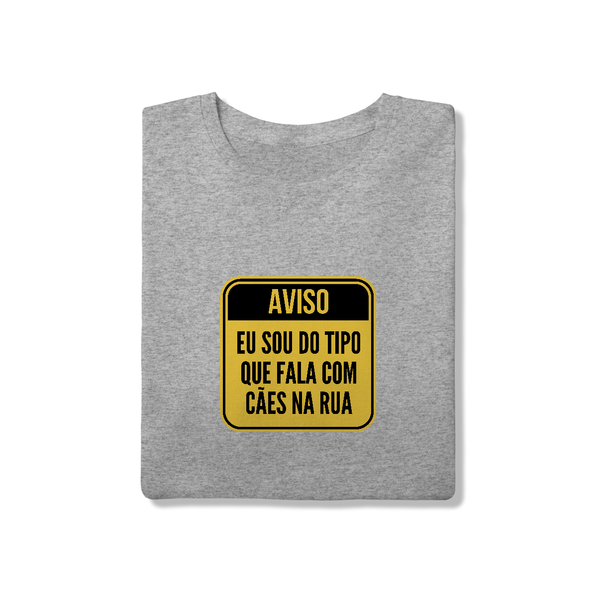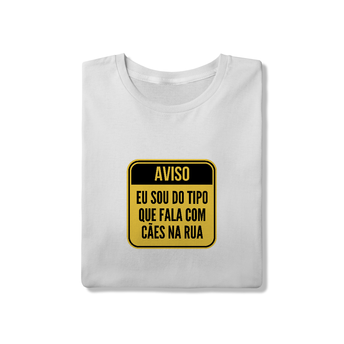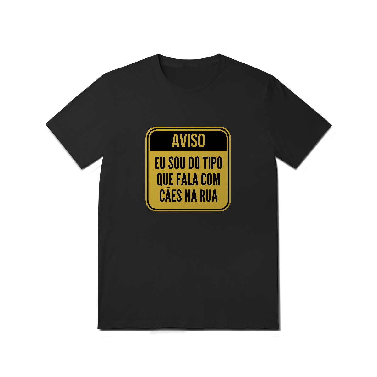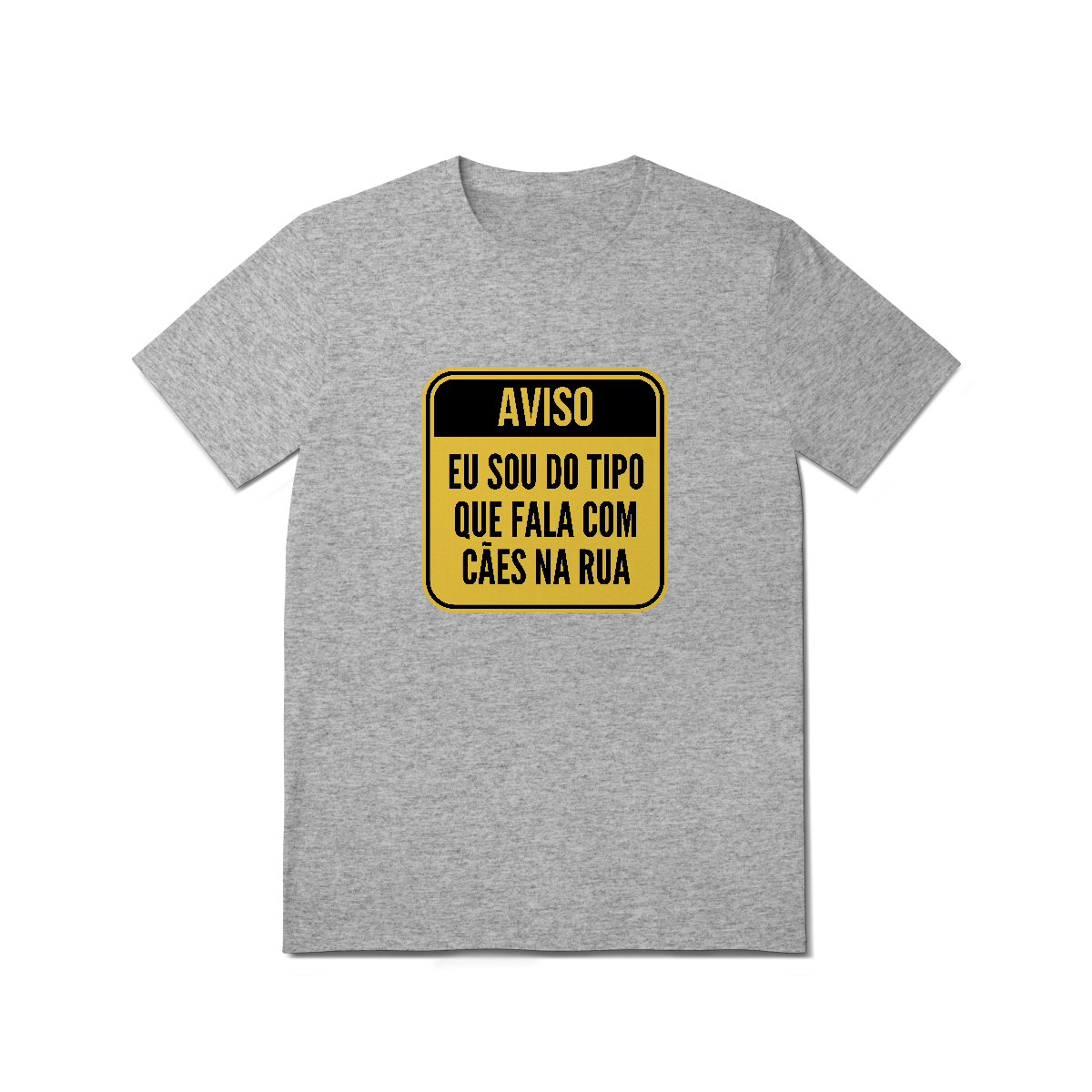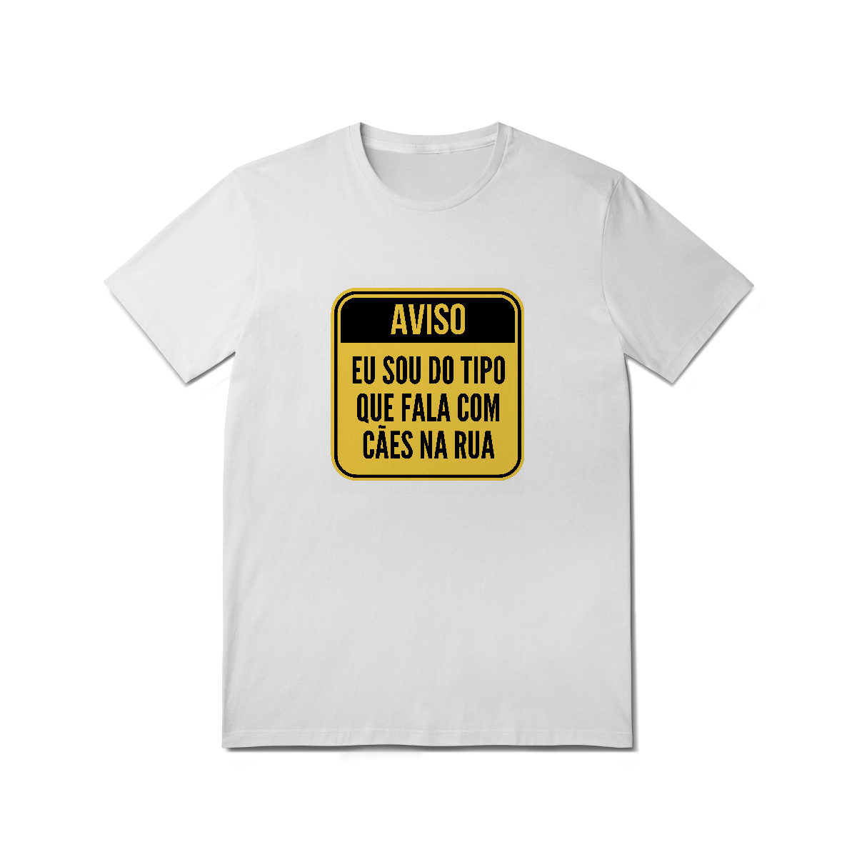 A Camiseta Aviso Cães na Rua traz uma estampa em formato de placa de sinalização com o aviso bem-humorado: “Eu sou do tipo que fala com cães na rua”. Um modelo divertido e cheio de personalidade para quem assume com orgulho esse hábito irresistível.