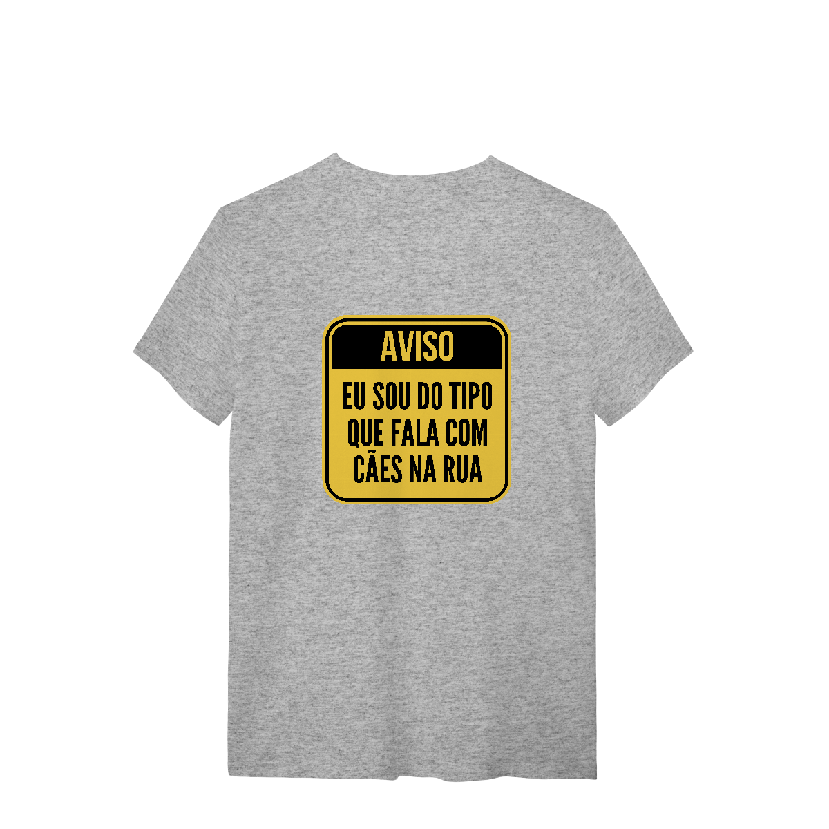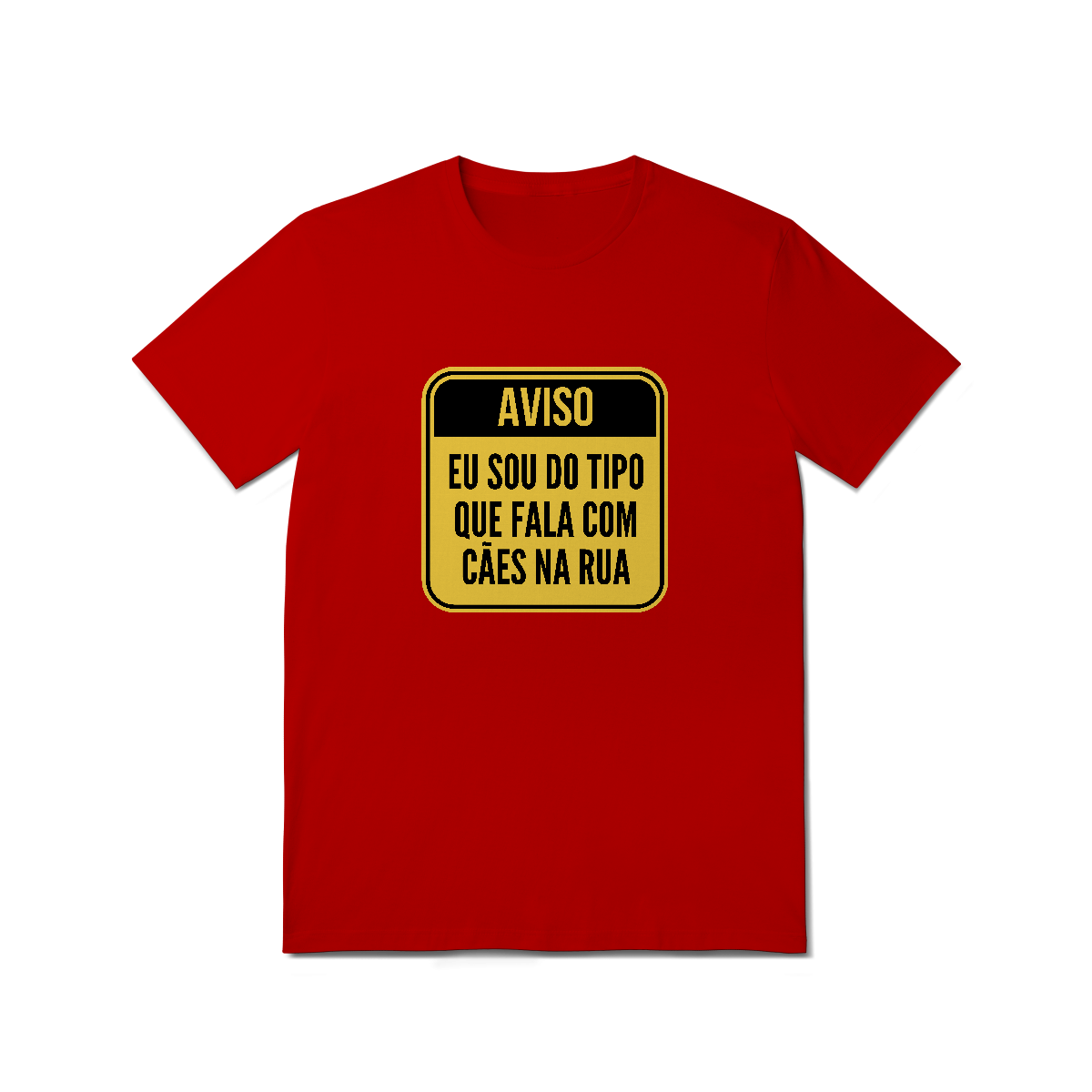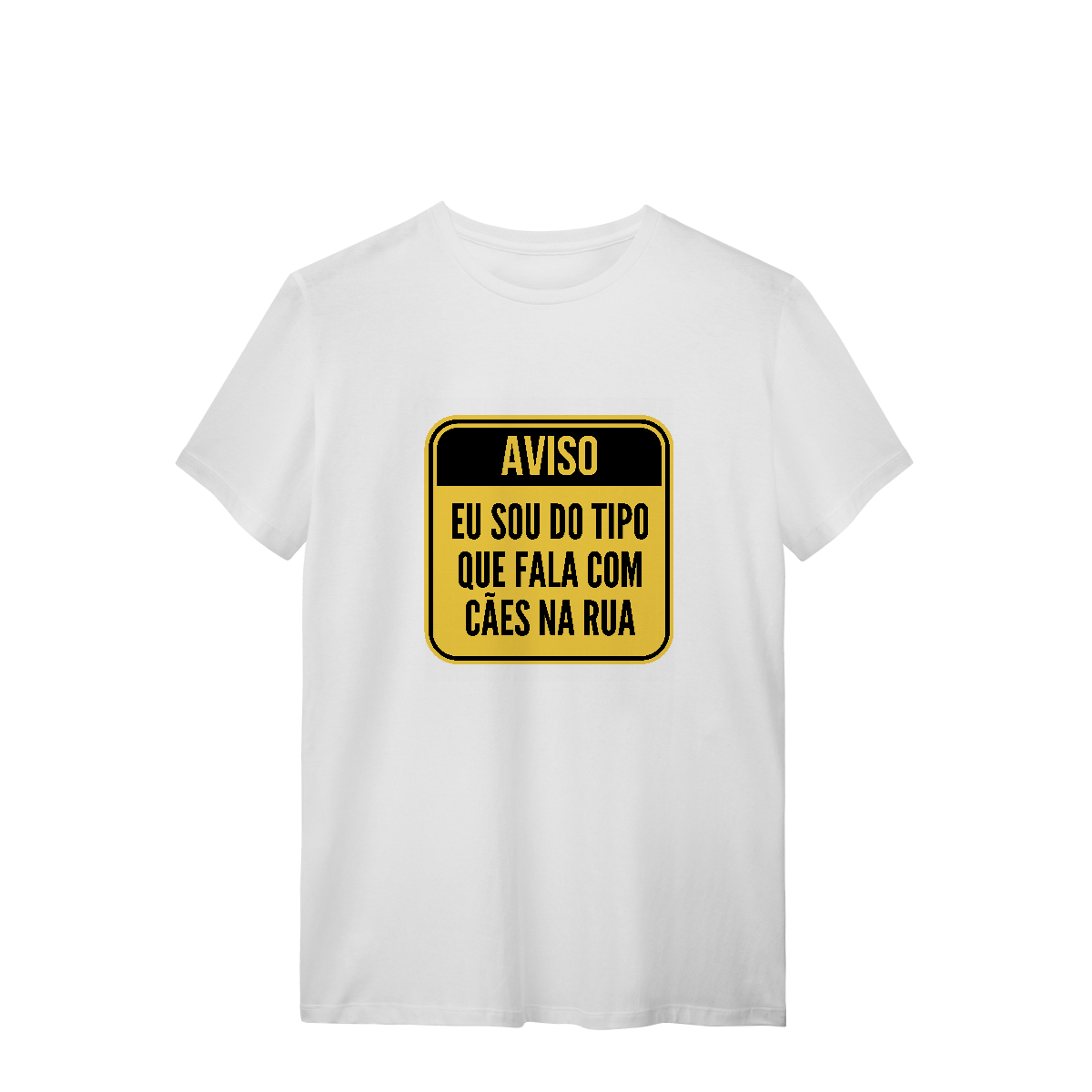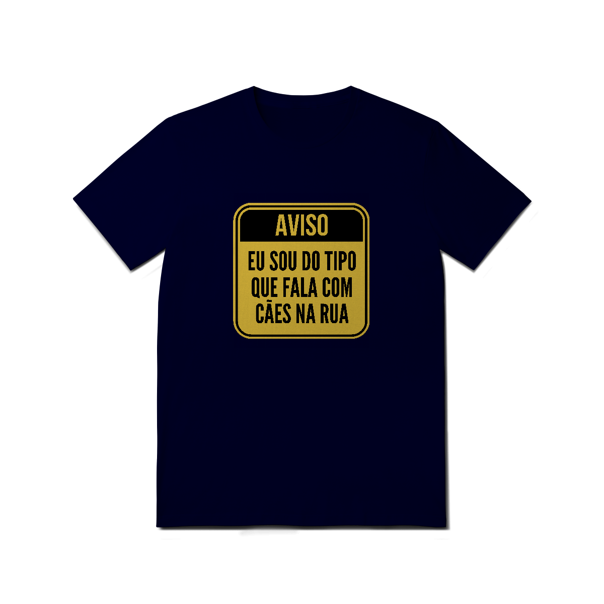 A Camiseta Aviso Cães na Rua traz uma estampa em formato de placa de sinalização com o aviso bem-humorado: “Eu sou do tipo que fala com cães na rua”. Um modelo divertido e cheio de personalidade para quem assume com orgulho esse hábito irresistível.