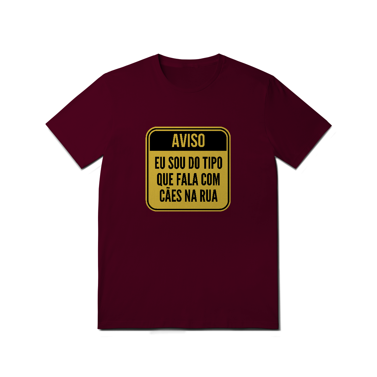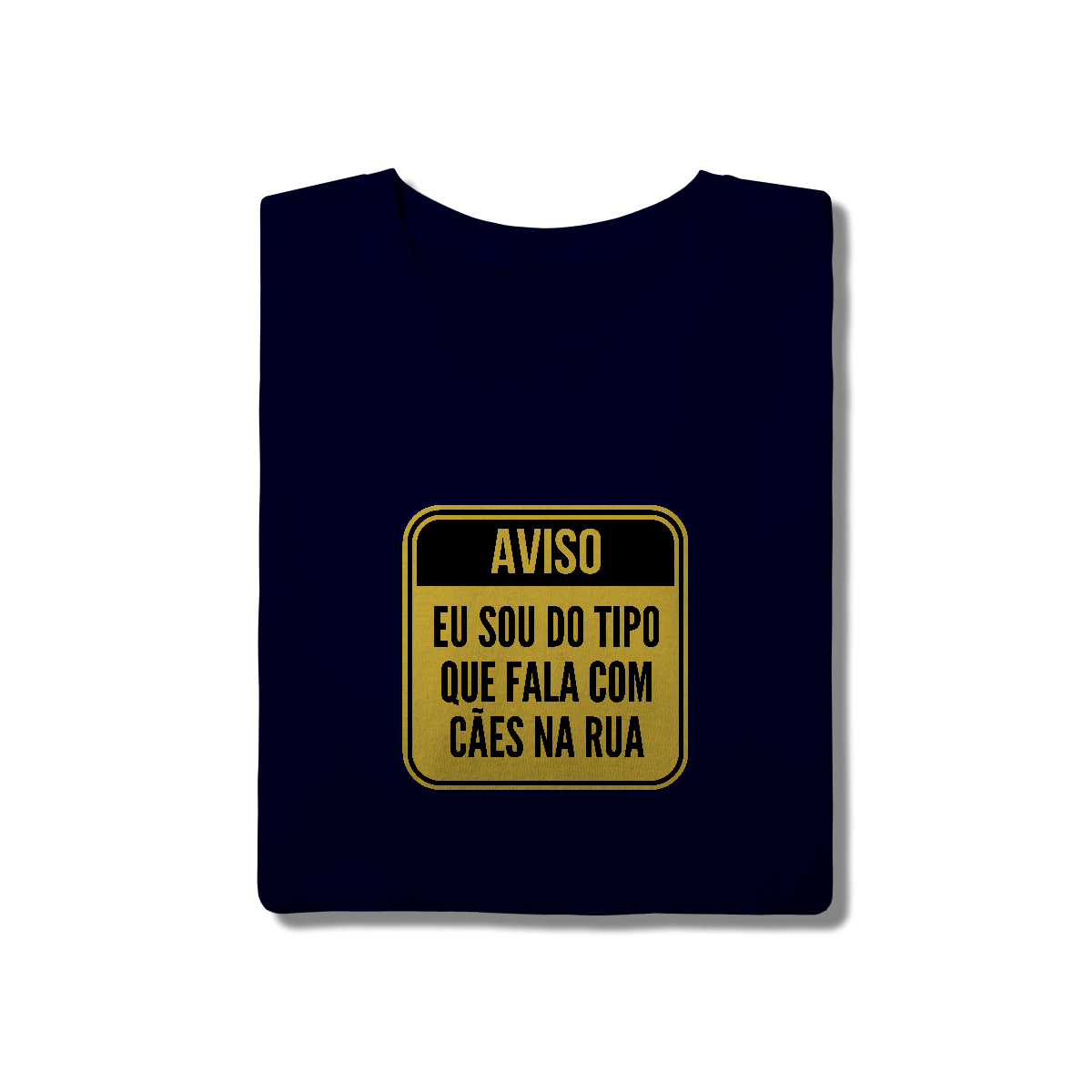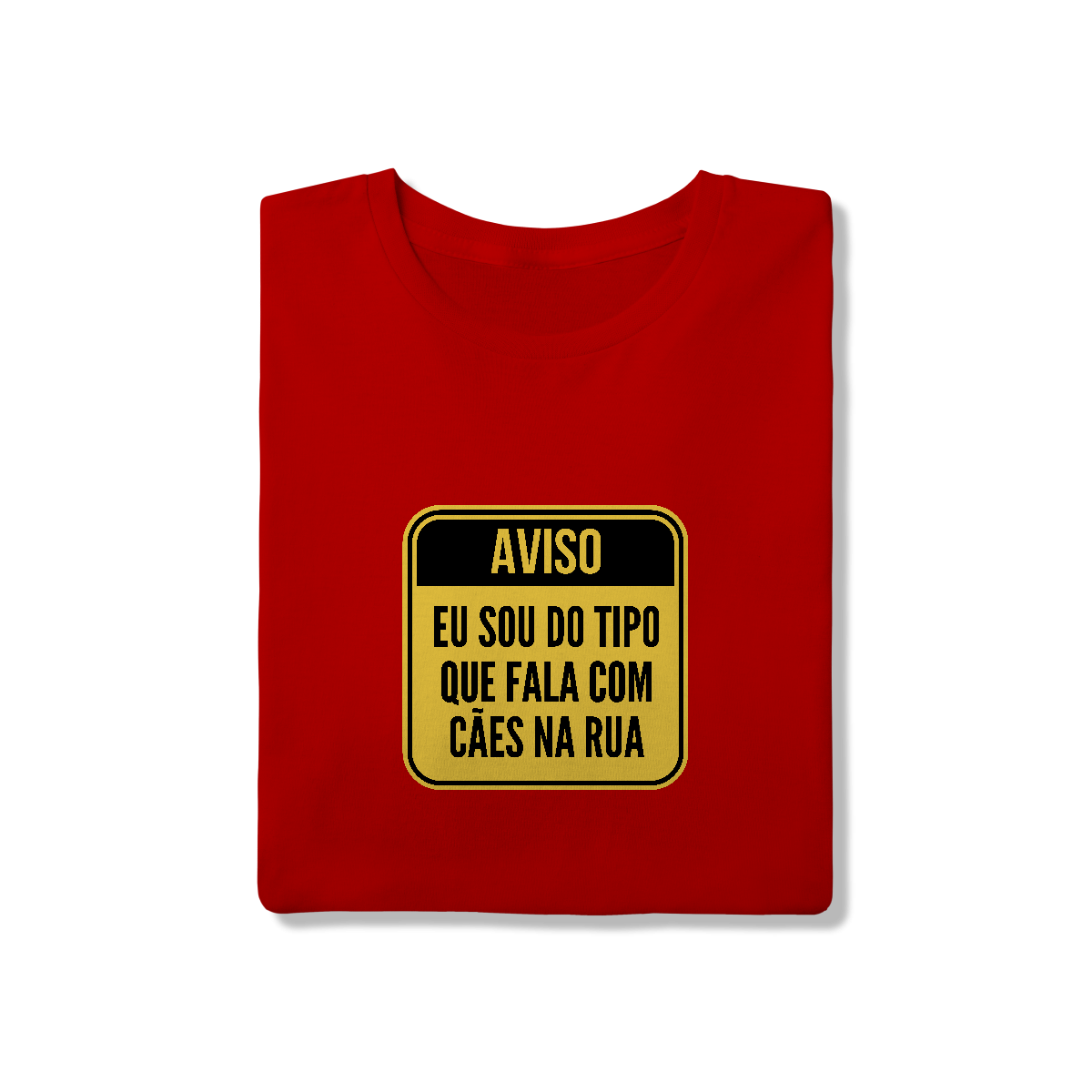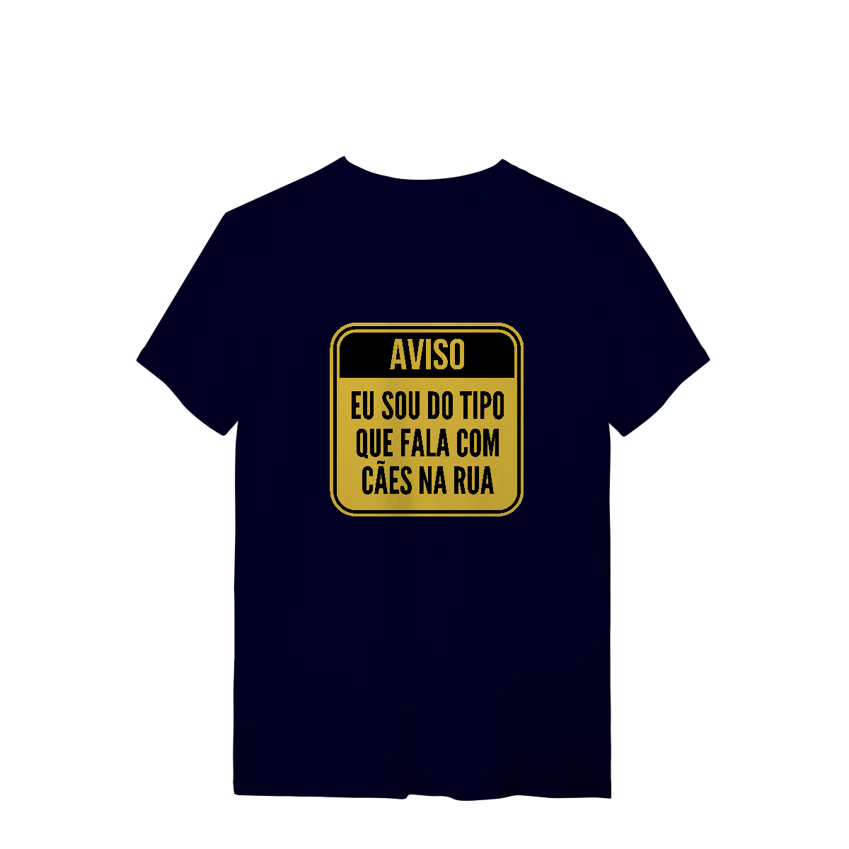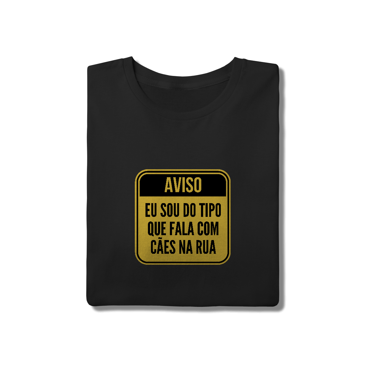 A Camiseta Aviso Cães na Rua traz uma estampa em formato de placa de sinalização com o aviso bem-humorado: “Eu sou do tipo que fala com cães na rua”. Um modelo divertido e cheio de personalidade para quem assume com orgulho esse hábito irresistível.