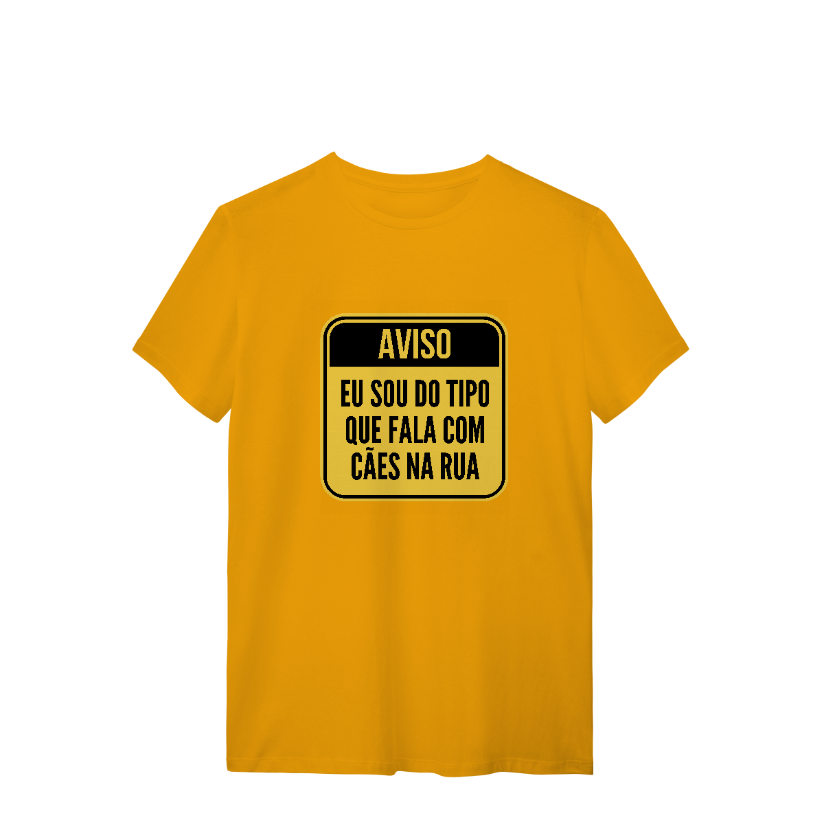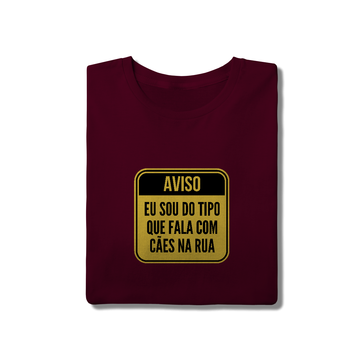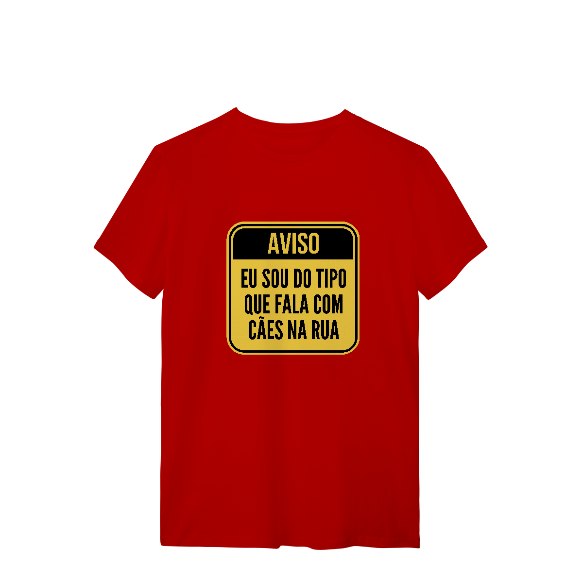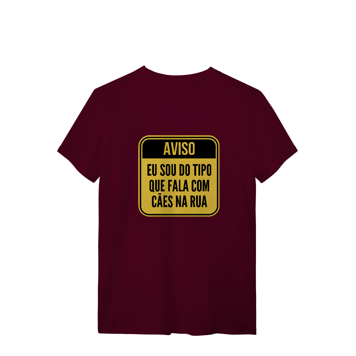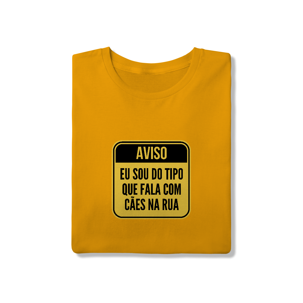 A Camiseta Aviso Cães na Rua traz uma estampa em formato de placa de sinalização com o aviso bem-humorado: “Eu sou do tipo que fala com cães na rua”. Um modelo divertido e cheio de personalidade para quem assume com orgulho esse hábito irresistível.