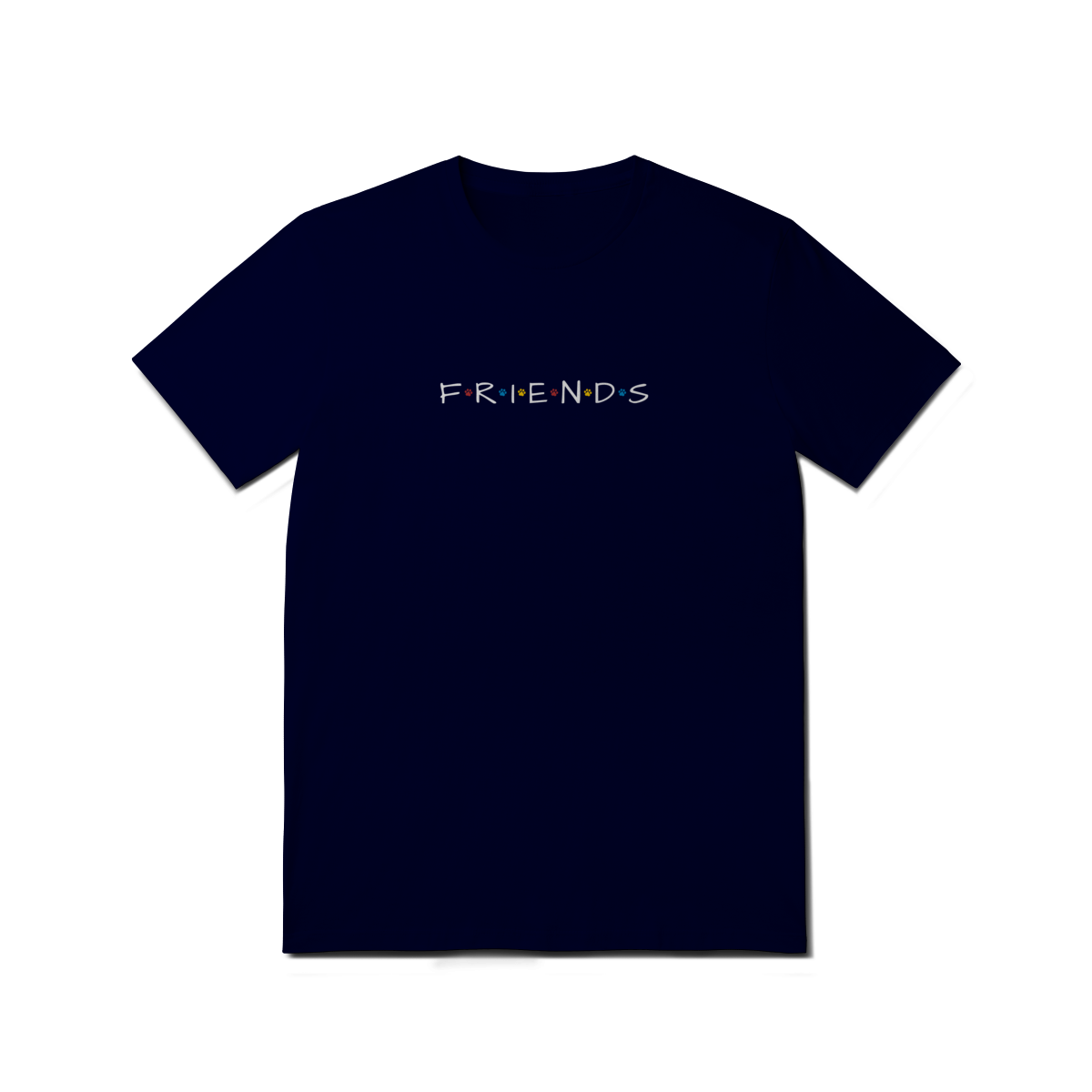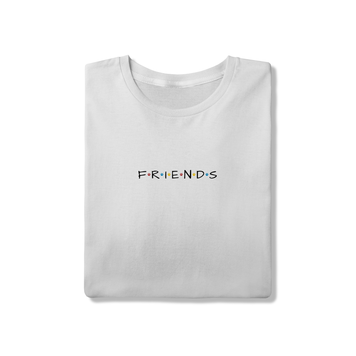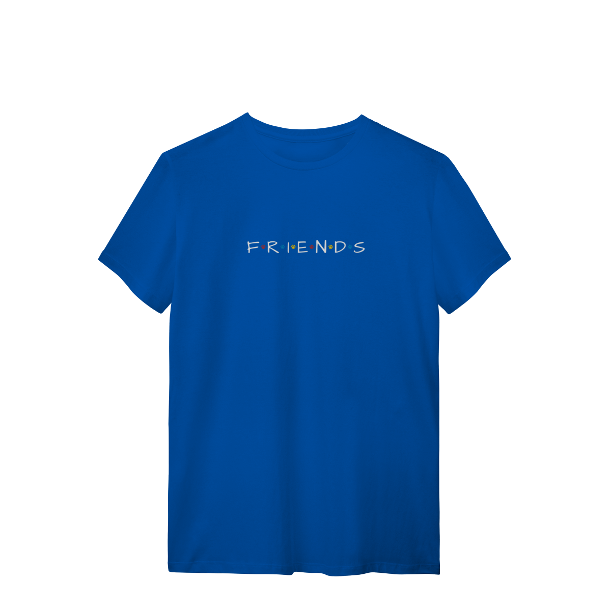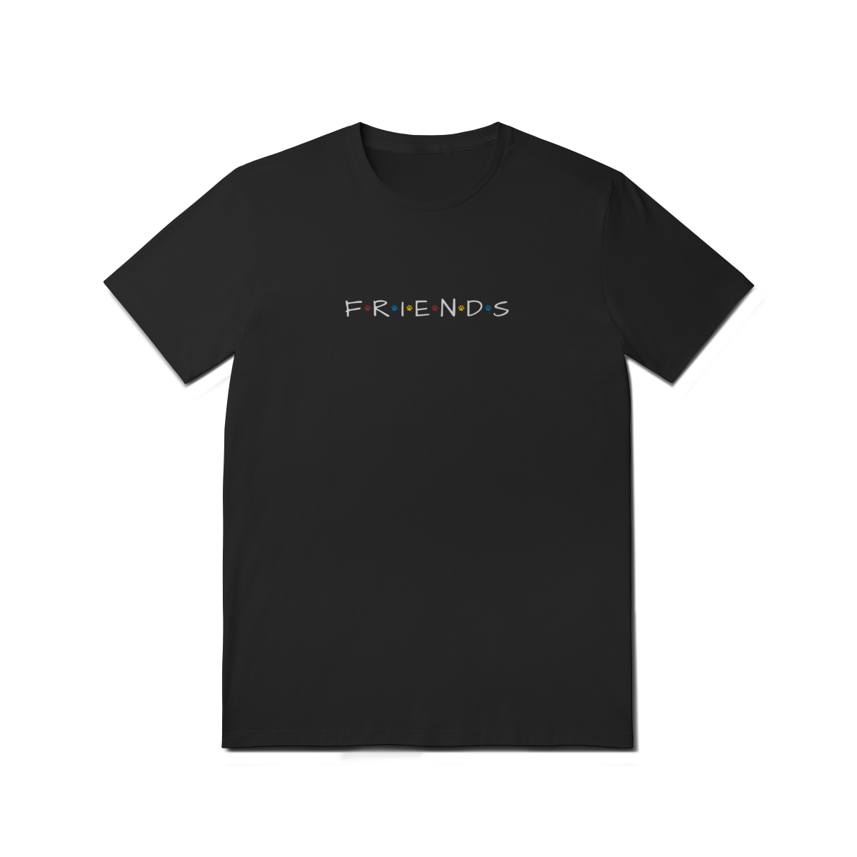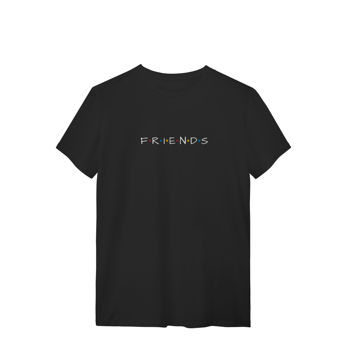 Porque amigos de verdade têm patas! Inspirada no logo icônico da série Friends, essa camiseta traz patinhas coloridas no lugar dos pontos, criando uma conexão única entre nostalgia e amor pelos dogs.