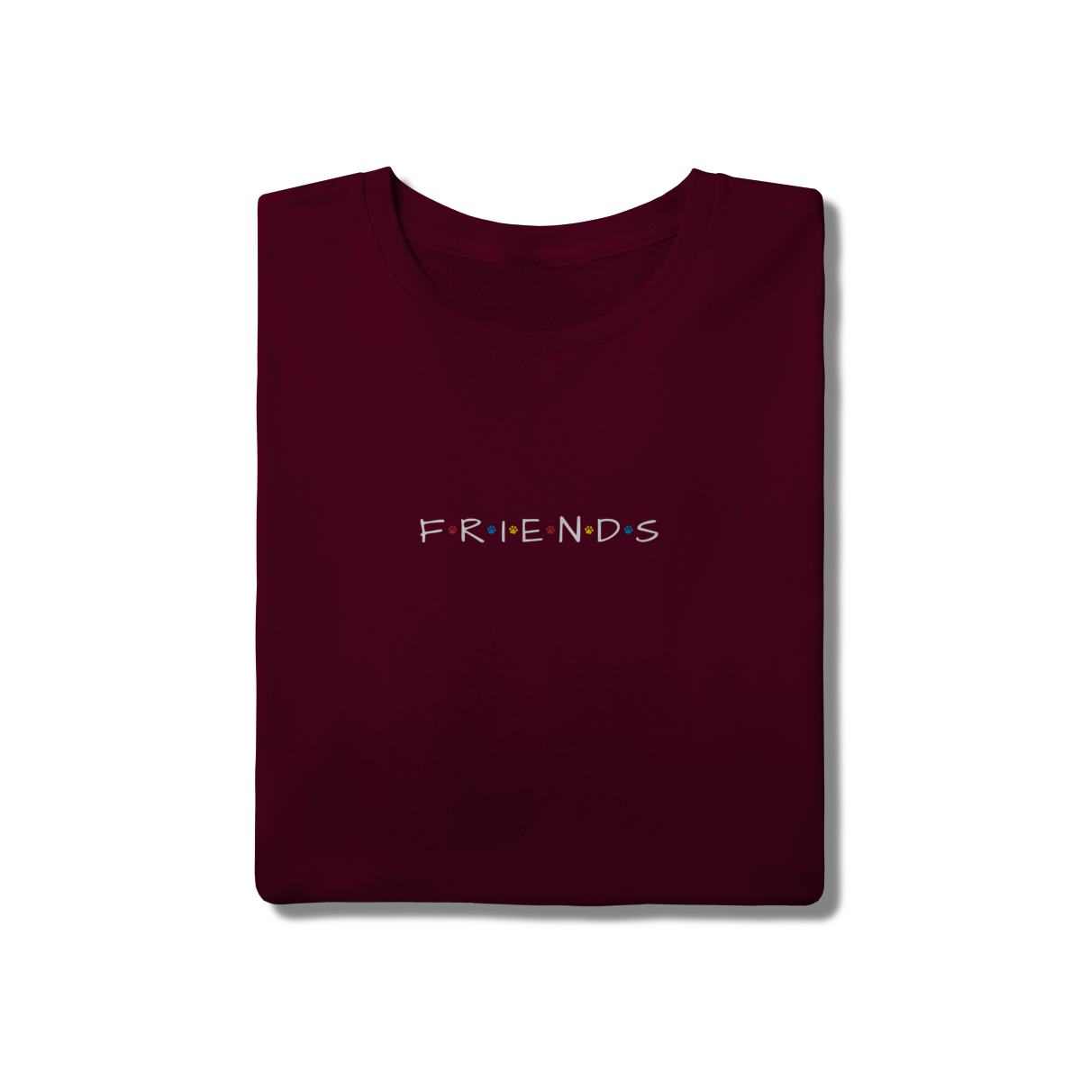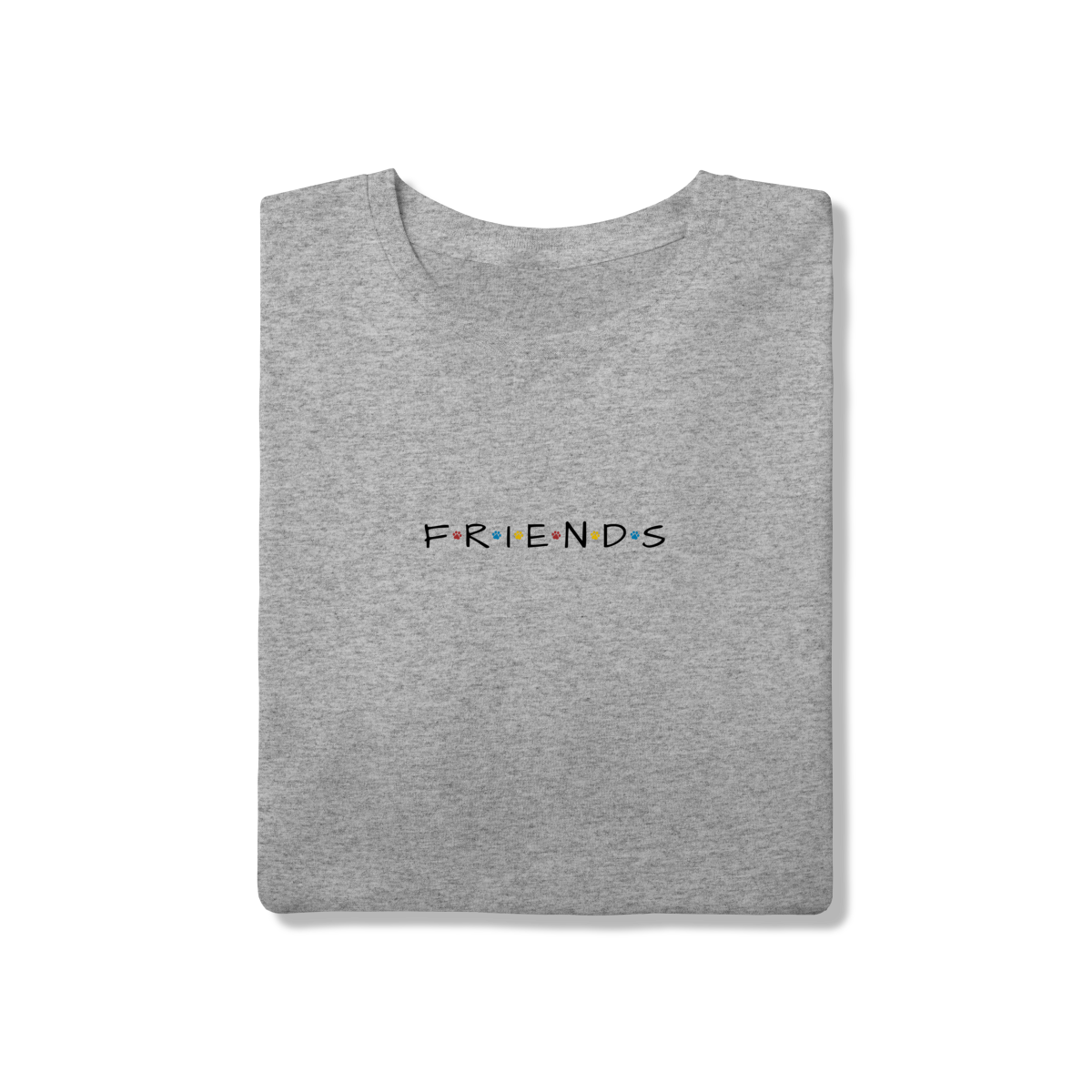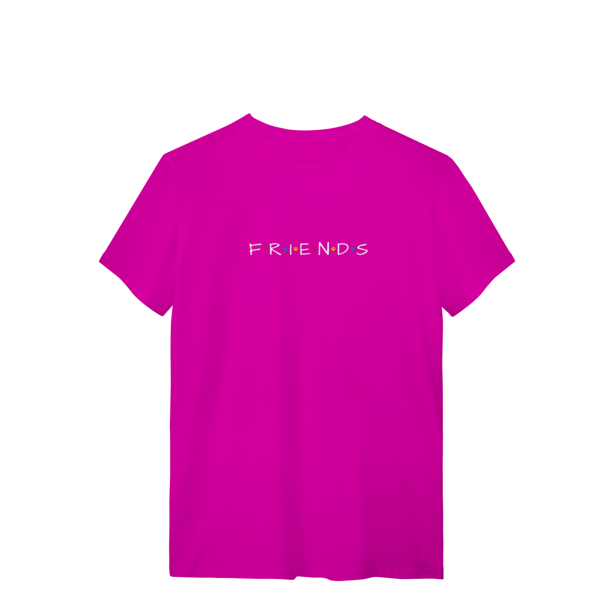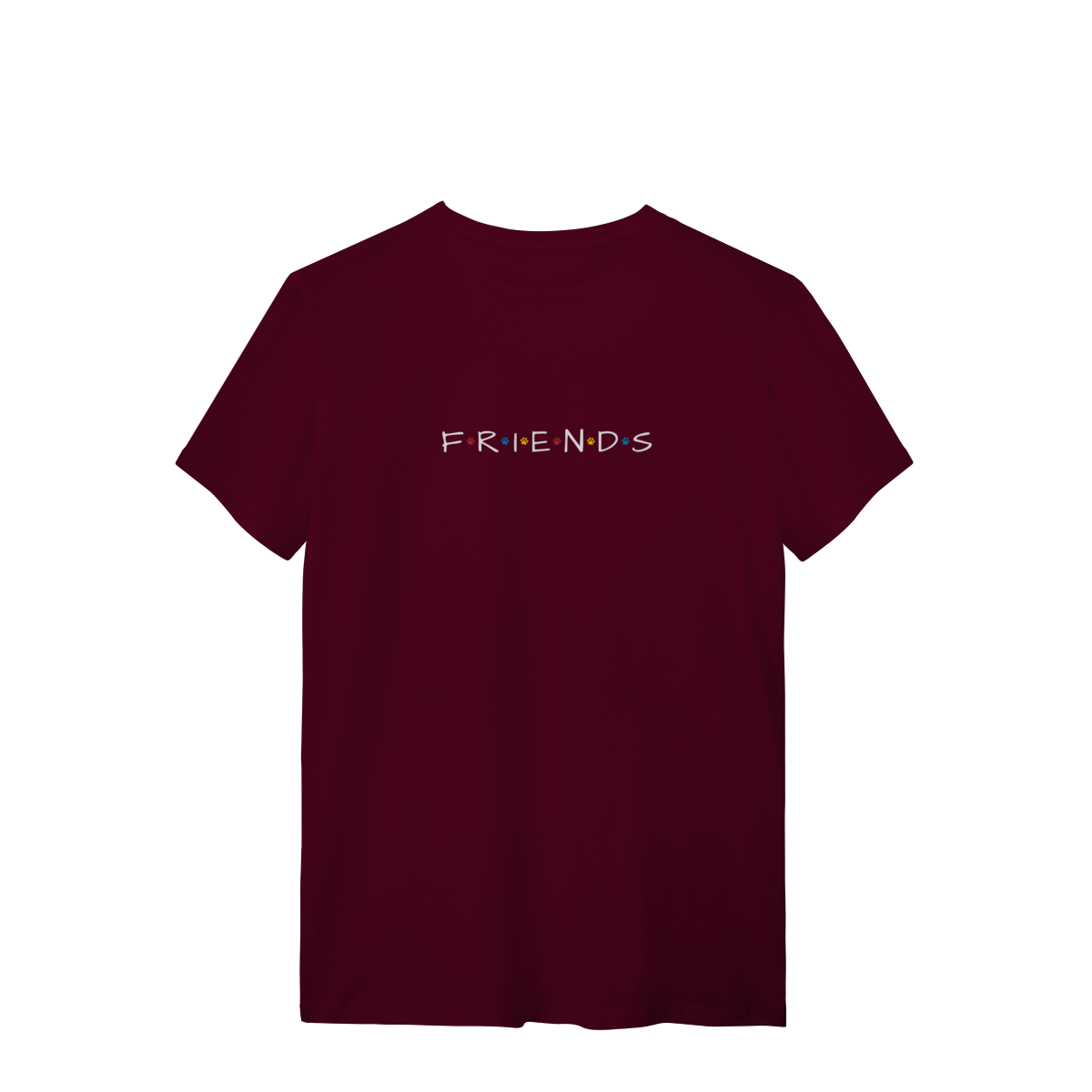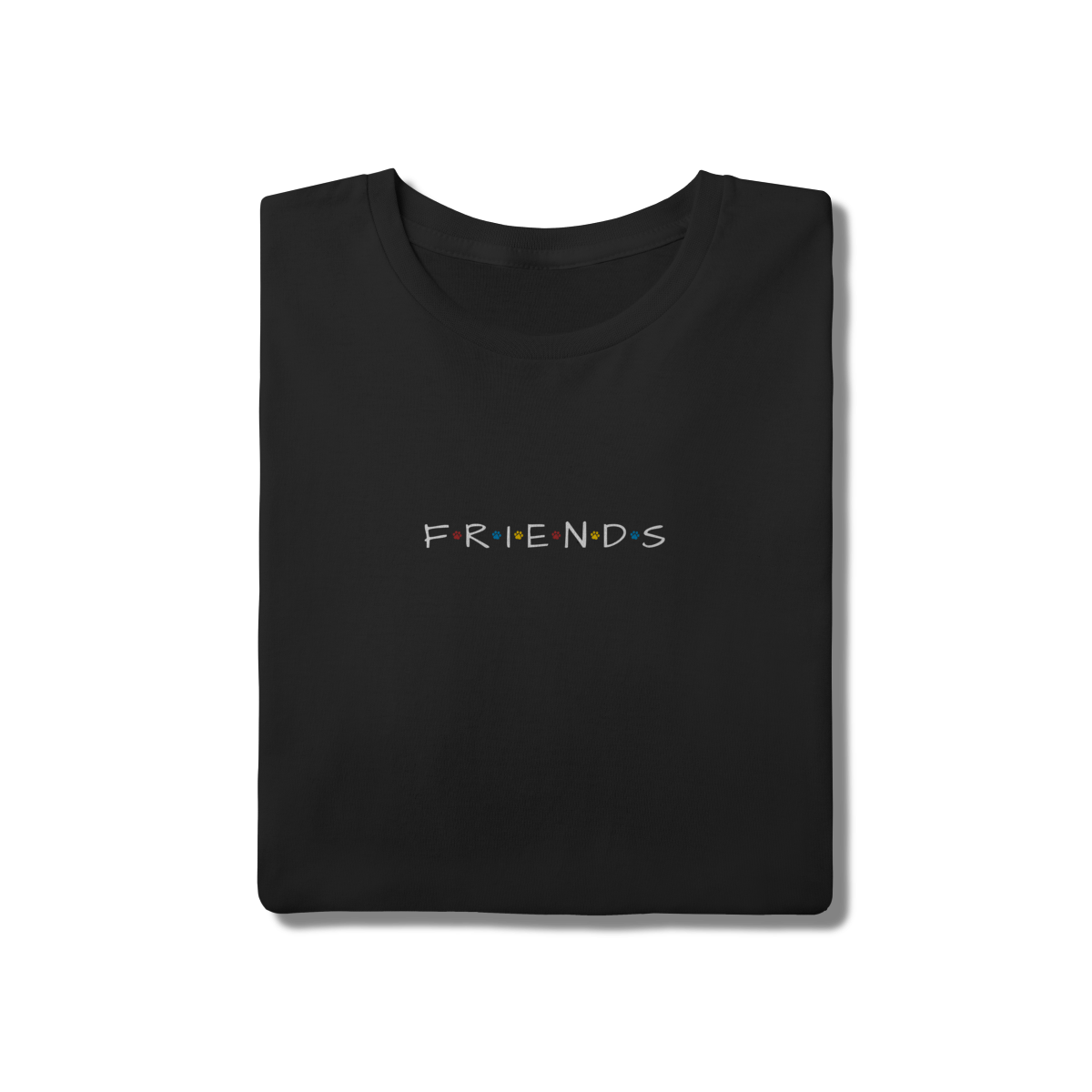 Porque amigos de verdade têm patas! Inspirada no logo icônico da série Friends, essa camiseta traz patinhas coloridas no lugar dos pontos, criando uma conexão única entre nostalgia e amor pelos dogs.