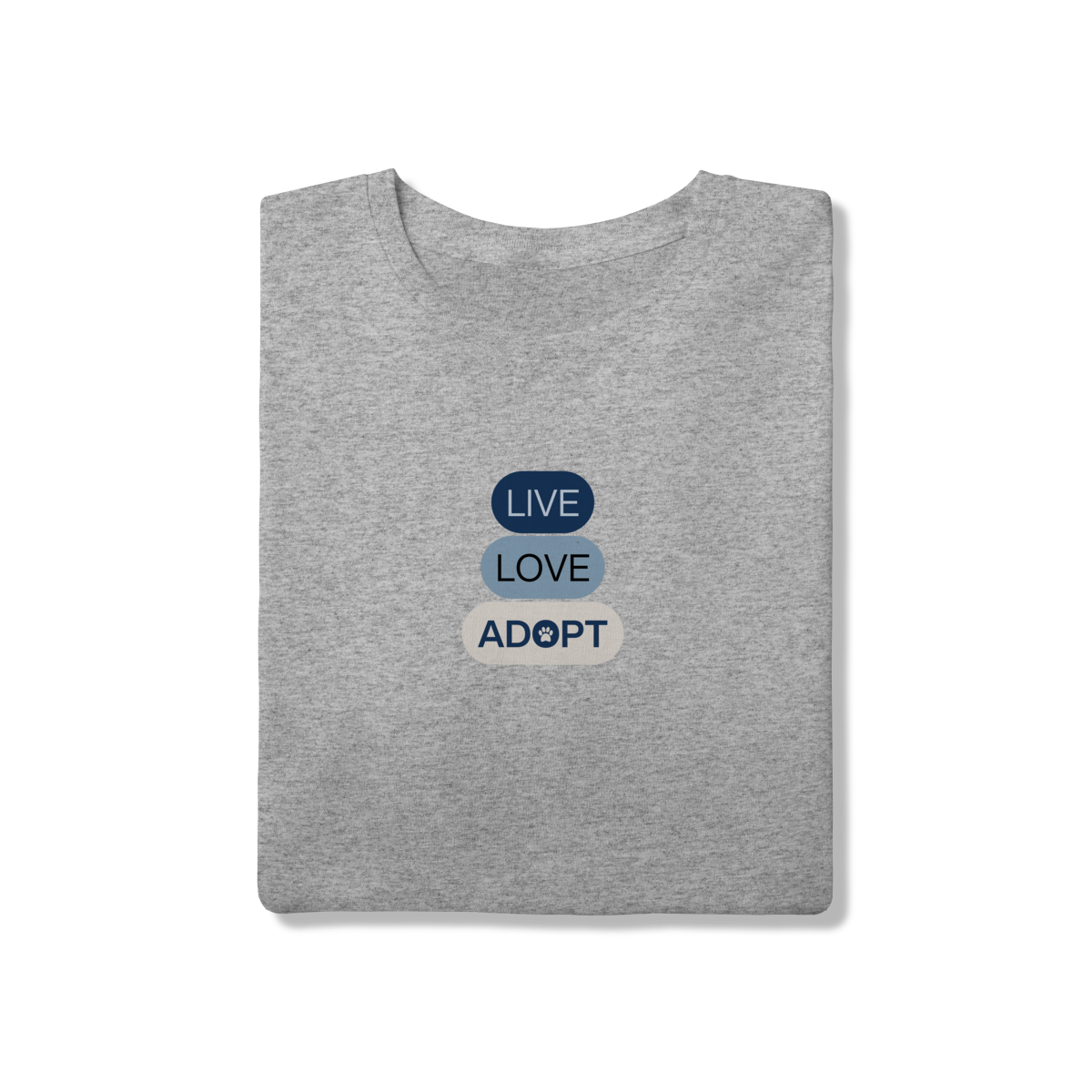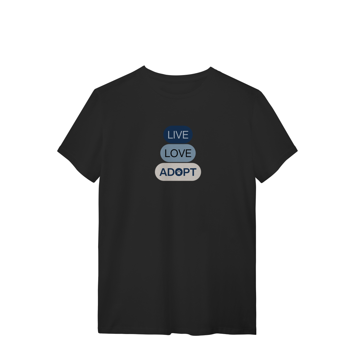 Mais que um estilo, uma mensagem! A estampa Live Love Adopt transmite, de forma minimalista e elegante, a importância de viver com amor e incentivar a adoção.