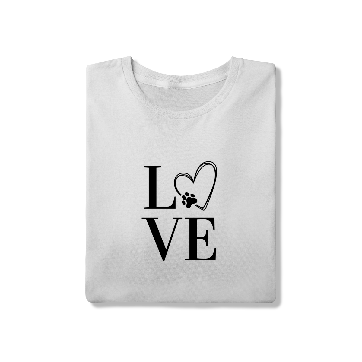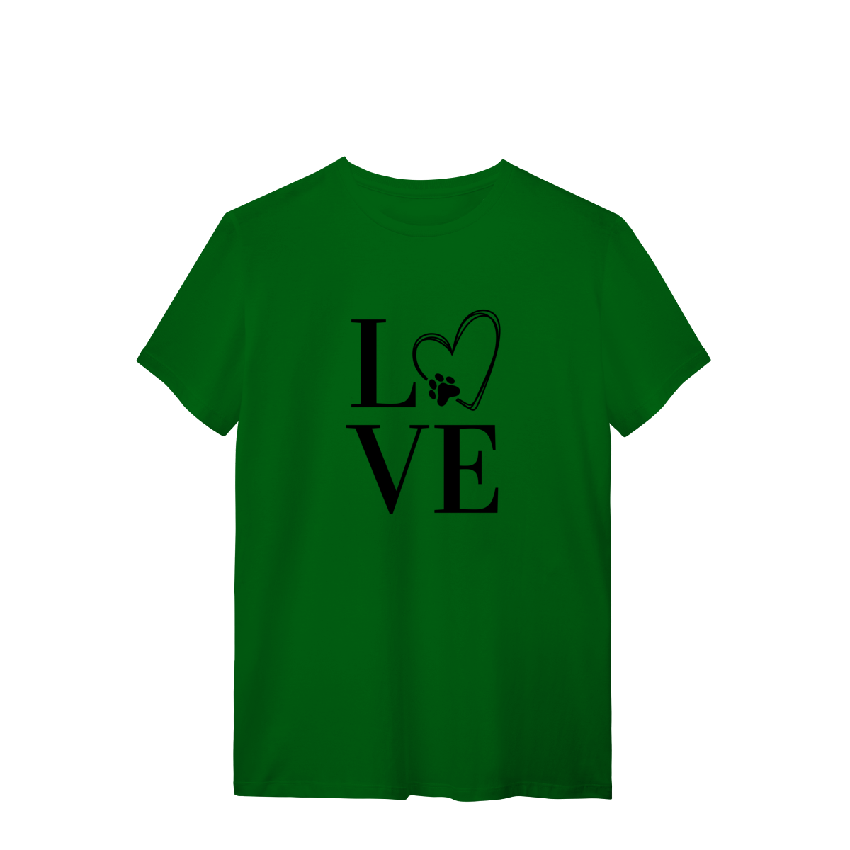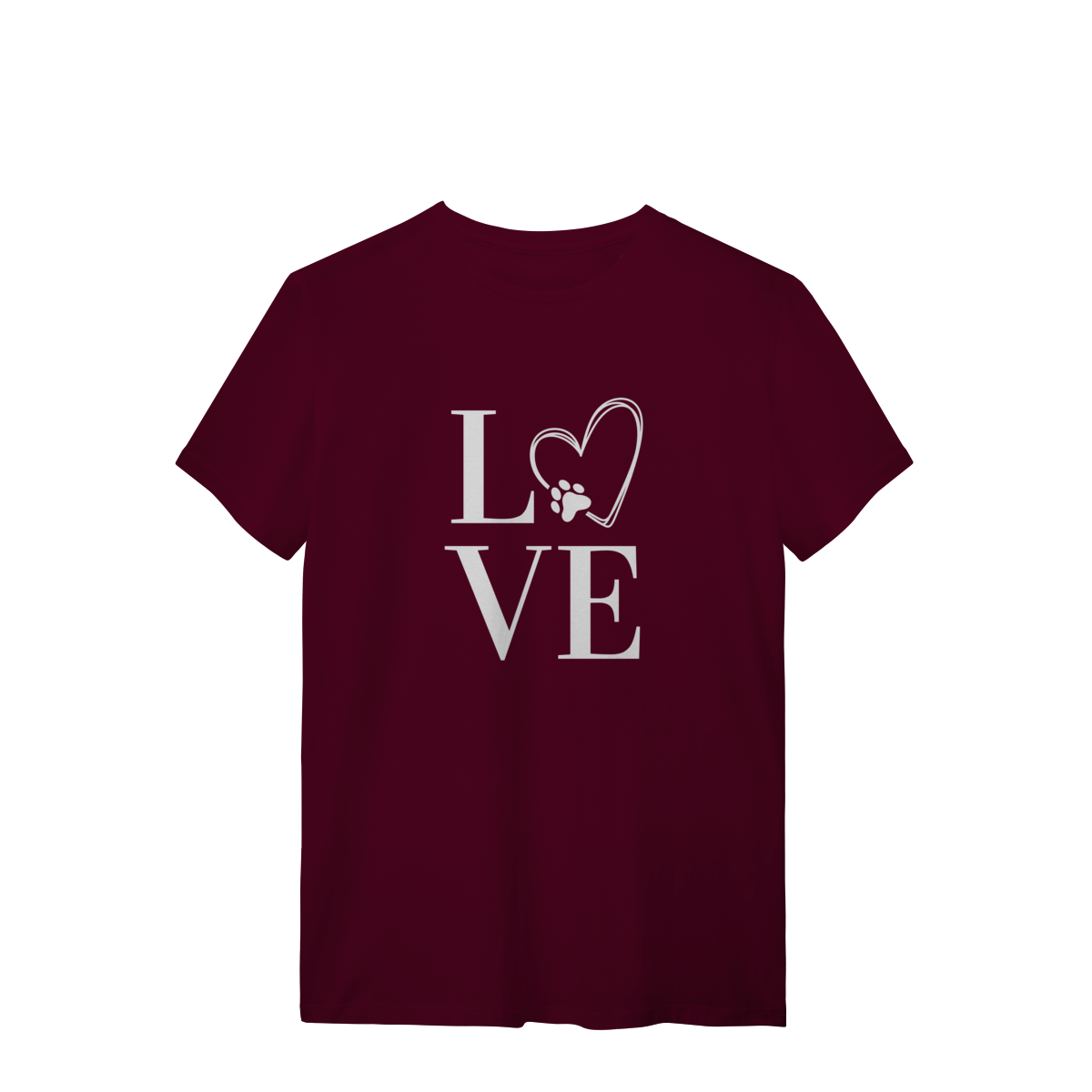 Mais do que uma camiseta, uma declaração de amor. A estampa "LOVE" traz um detalhe especial: o "O" transformado em coração com patinha, simbolizando o carinho e a lealdade dos nossos melhores amigos de quatro patas.